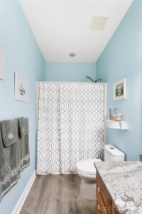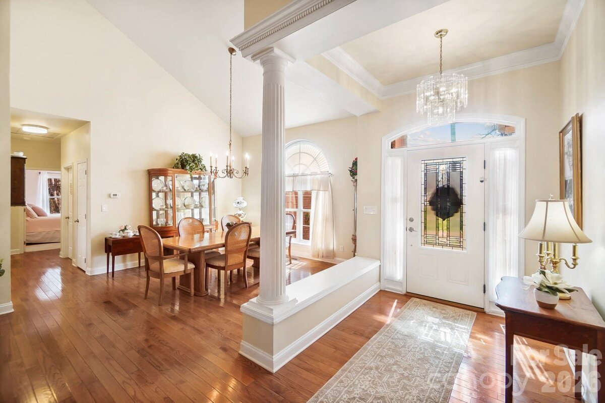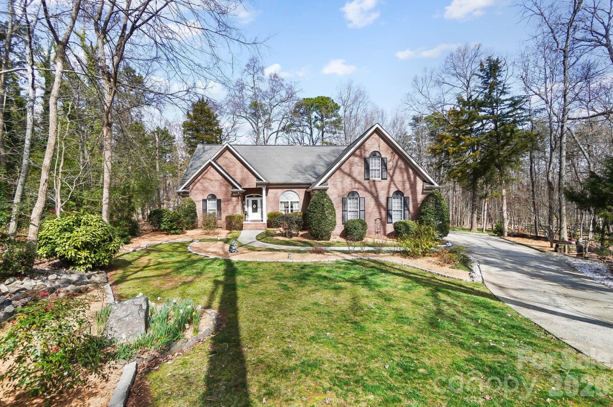 Looking for a private, wooded lot with no HOA? This is it! This custom designed, 1.5 story, full brick home features an open floor plan with split bedrooms for extra privacy. Step inside to the main level to find a formal dining room, vaulted ceilings, spacious great room with gas log fireplace, and a well equipped kitchen with quartz counters, a breakfast nook and plenty of space to cook and entertain. The generous size primary suite opens to an enclosed sun porch providing a private retreat space for the owner and also features a luxury bath with garden tub , separate shower and walk-in closet. Two generous size secondary bedrooms that share a hall bath and a conveniently located laundry room completes the main level. On the upper level you will find a spacious bonus room with full bath, walk-in closet and 400 sq ft of walk-out attic space! Exterior features include a side load garage, storage shed, fully enclosed sun porch, and deck that overlooks beautiful views of the wooded back yard. Great location on a quiet cul-de-sac lot and minutes to downtown Mint Hill where you can enjoy walking to outdoor dining spots & farmers market.