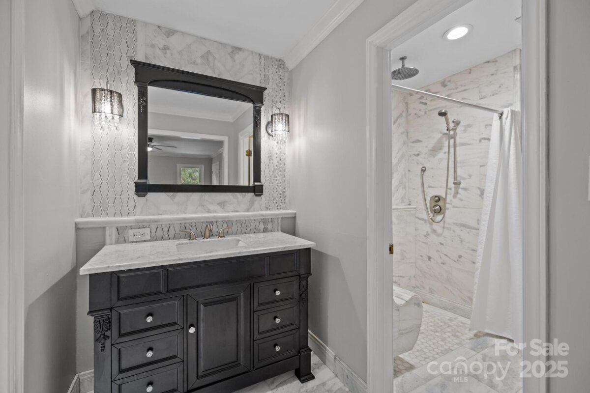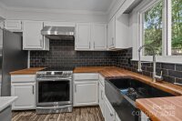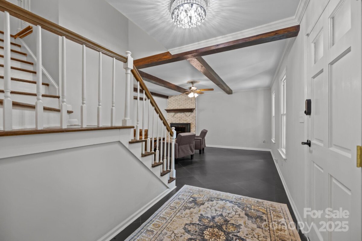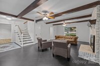 Ahhh, that curbside charm just draws you in! With a prime location near Matthews, this home balances warmth, functionality and charm with custom architectural touches and thoughtful upgrades. From the moment you enter, the exposed wood beams and wood-burning fireplace set the tone for cozy nights in and relaxed weekends. The kitchen, with its warm travertine tile floors and stainless steel appliances, invites you to linger a little longer over morning coffee or gatherings with friends around the island. Upstairs, hardwood floors flow throughout every bedroom, creating a warm and timeless feel. Both full bathrooms have been thoughtfully upgraded with heated tile floors...the perfect touch for chilly mornings! The primary suite feels like a retreat, complete with a walk-in closet and a custom-designed shower that feels spa-like, yet personal. Outside, the fully fenced backyard and patio offer just the right balance of privacy and space. Whether you’re sipping a beverage under the stars, enjoying a quiet Sunday with a book, or hosting an intimate cookout, this backyard was made for simple, cozy moments. With a new roof in 2024, the freshly aerated/seeded/fertilized front and back yards and plenty of updates throughout, you can move right in and start enjoying everything this home has to offer. Tucked in a quiet neighborhood near Matthews but still close to Charlotte conveniences, it’s the best of both worlds!