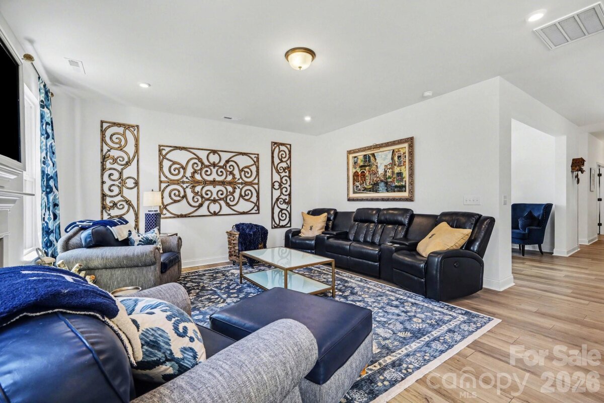 Welcome to Lakeside Glen, a beautiful new construction community by DRB Homes (built in 2025), offering the perfect blend of luxury living and waterfront accessibility. This stunning, newly built home is one of the few highly sought-after walkout basement floorplans in the neighborhood built and move in ready! This spacious property features 5 bedrooms and 4.5 bathrooms, designed with an open floor plan perfect for modern entertaining. The main level is appointed with Luxury Vinyl Plank (LVP) flooring throughout and includes a dedicated office space with French doors, a formal dining room, and an expansive open living room flowing into the gourmet kitchen. The chef's kitchen boasts a large quartz countertop island, top-of-the-line stainless steel appliances, and abundant natural lighting. Upstairs, retreat to the spacious primary bedroom suite, complete with a dual vanity bathroom and a massive walk-in closet. The finished walkout basement is a true highlight, featuring over 1100 square feet of versatile entertaining and living area, including a full fifth bedroom and full bathroom. Outdoor enjoyment is guaranteed with a large 12x10 wood deck overlooking your private backyard and wooded area, complemented by a full extended patio accessible from the walkout basement. Enjoy an unparalleled location just a short walk from the shores of Lake Wylie and the recreational amenities of the Allison Creek Waterfront Park. Lender to cover first 3 MONTHS of buyers INTEREST on the loan. Ask your agent about this incentive!!