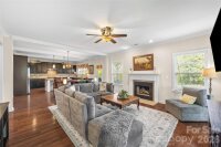 This spacious four-bedroom home offers everything you need, starting with an open floorplan featuring beautiful hardwood flooring on the main level. The chef's kitchen is highlighted by a center island/breakfast bar, granite countertops, a tile backsplash with accent tiles, and Stainless Steel appliances, including a four-burner gas range/oven, wall microwave, and dishwasher, flowing into the great room with a cozy fireplace. The main level also includes a formal dining room perfect for entertaining, showcasing a trey ceiling and decorative wainscoting, a large, dedicated office space, a bright sunroom with three walls of windows, and a convenient drop zone at garage entry. Upstairs, a wide landing leads to the bedrooms and a flexible bonus room with a double-door entry. The luxurious primary suite features a trey ceiling, fan, and an expansive bath with a tile floor, granite counters with double sinks, a large shower with black framing, a garden tub with niche shelving, and a separate water closet. All secondary bedrooms are spacious with walk-in closets and ceiling fans, with Bedroom #2 offering a private ensuite. Exterior features include a beautifully landscaped, fenced rear yard and excellent outdoor entertaining space with both a covered patio and a slate patio adorned with string lights. Come visit this well cared for home.
