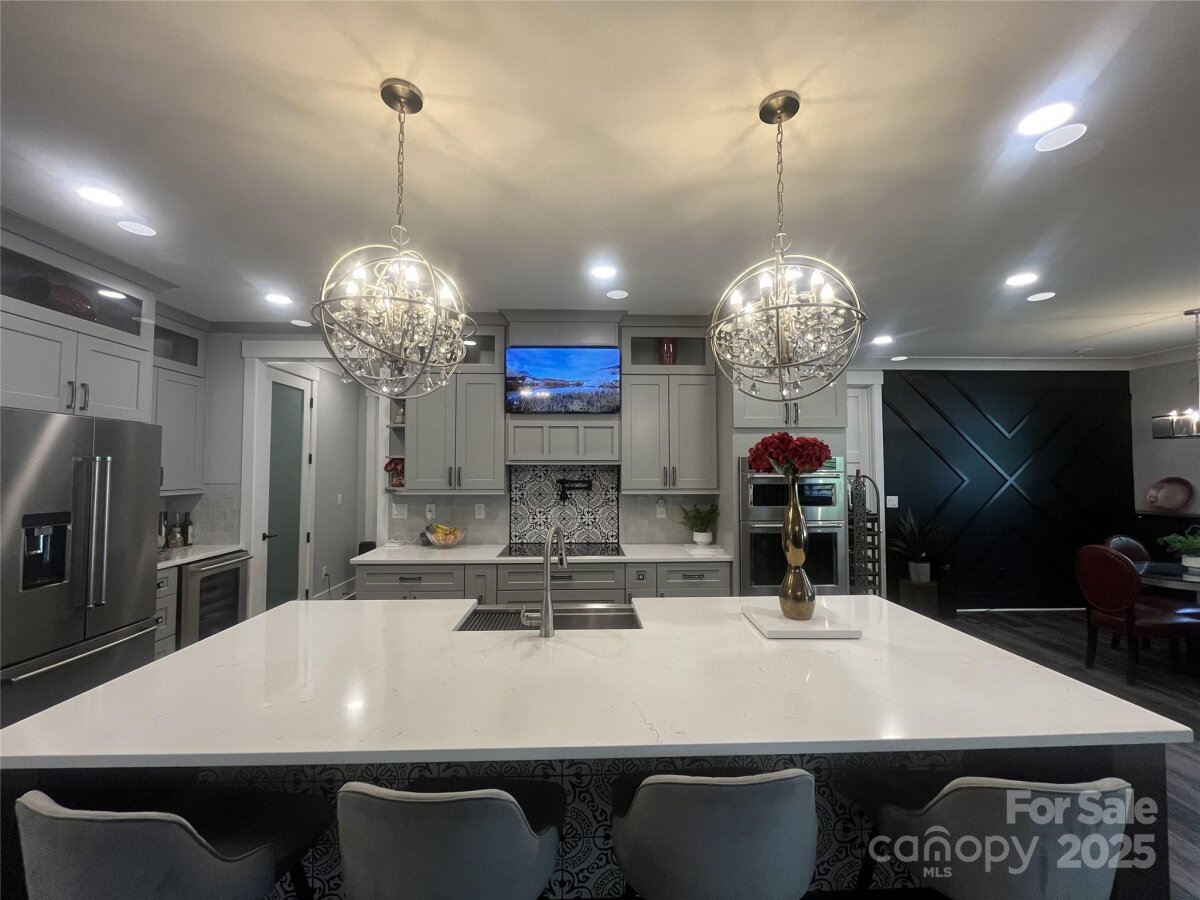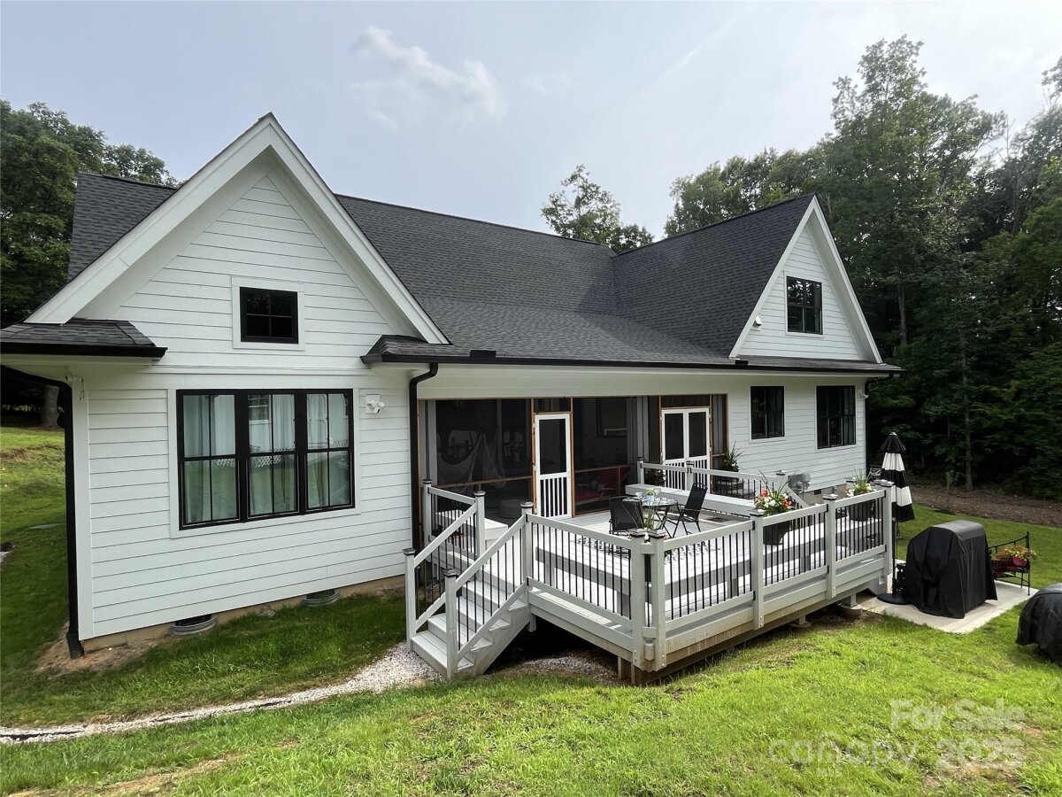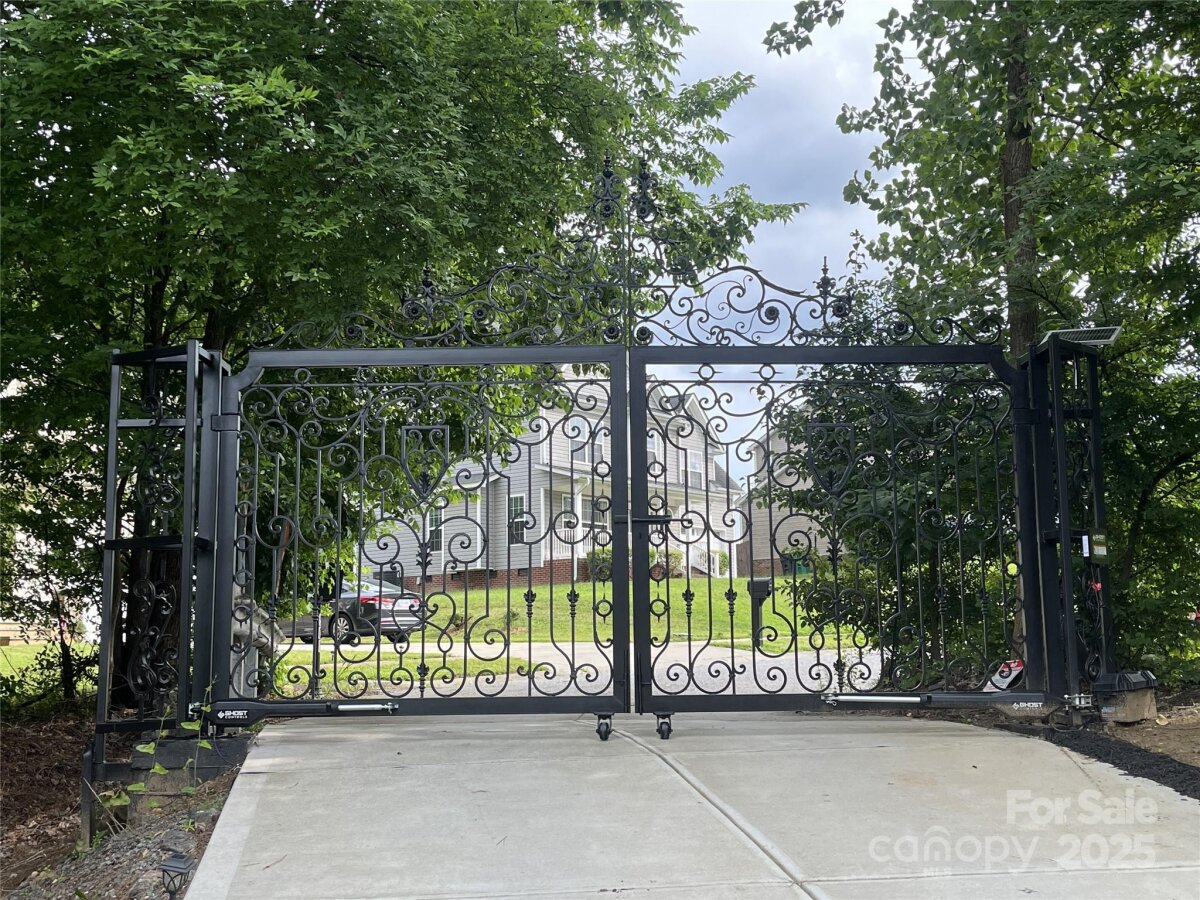 Stunning ultra-custom home on a huge lot! A show-stopping imported iron gate opens up to this large stately home built just 2.5 years ago on 1.3+/- acres. 4 bedrooms with 3 full baths and 2 half baths, flex/workout room, large office/study, and massive entertaining space. Upgrades galore include extensive trim work, beams, coffered ceilings, custom cabinetry & hardware, huge quartz island, expansive imported tilework, top-of-the-line KitchenAid appliances and more! Amazing floorplan with primary suite & additional guest suite on the main level. Huge screened back patio w/ flip-out window for indoor-outdoor entertaining, incredible back deck with built-in seating, massive backyard, and an enormous 28x12' storage shed/workshop. No HOA! Totally private tucked away dream still within city limits. Just minutes from I-485, UNC Charlotte, Concord Mills and Harrisburg. Short distance to concerts at PNC Music Pavilion, restaurants, and shopping.