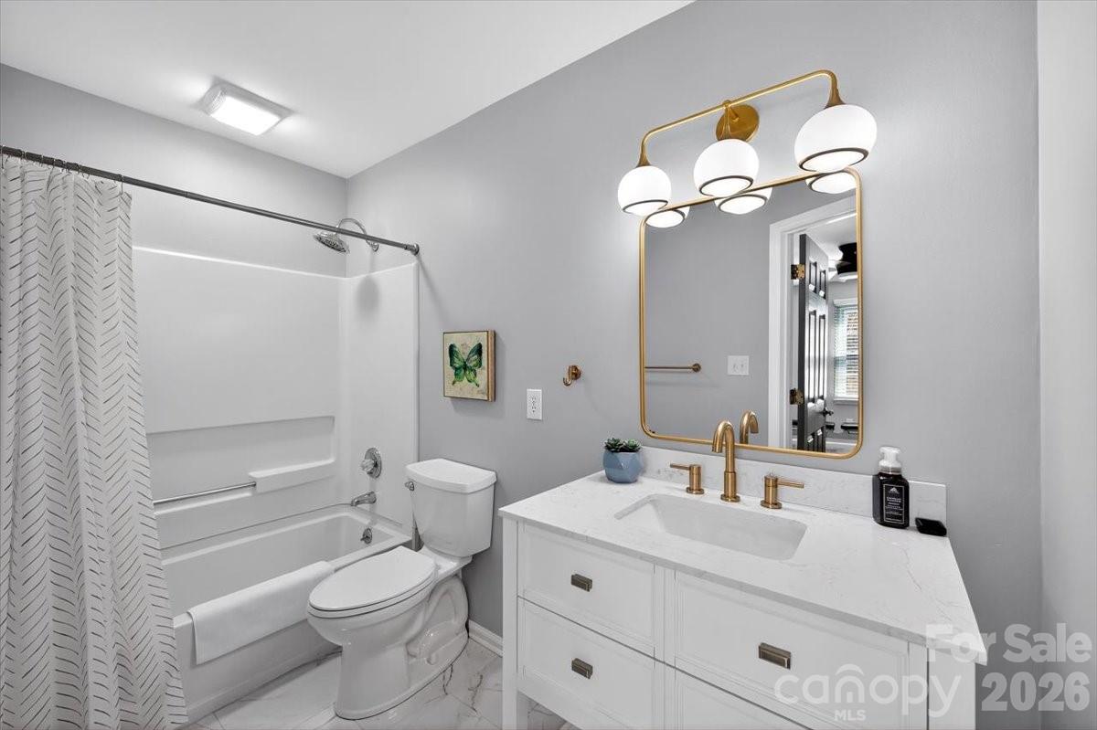 Amazing home in Cameron Wood! All new JamesHardie fiber cement siding. New trim, soffits and cedar ridge overhang system on the porch ceiling, beams, window, door and garage casings. New oversized gutters and downspouts also in 2025 (over $60k value)! An amazing upgrade over the higher maintenance hardboard common in this area. Crawlspace encapsulated in 2025. Updated bright white kitchen with pantry and select cabinet pullouts. Primary suite on the main level. Updated baths, 3 full plus one half downstairs! Vinyl plank flooring on main level and carpet up. Fresh interior paint throughout. Updated front/rear exterior lights, landscaping, exterior lighting and a lovely large fenced backyard. New shed with matching siding for extra outdoor storage. New washer/dryer to remain with the home with acceptable offer. Come see this one today!