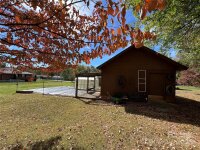 Welcome home to this unique 3-bedroom, 2.5 bathroom brick ranch. Recent updates include a new HVAC system installed in May 2025, a water heater from 2023, and LVP flooring added to the office/study, hallway and one of the bedrooms in 2023. The front porch features two separate entry doors. The first leads to an office or study with an attached half bath—an ideal space for guests due to its private entrance. The second door opens into a light-filled main living area. The spacious kitchen includes gas logs, creating a warm and cozy atmosphere, while the laundry room offers built-in cabinets for excellent storage. The exterior includes a concrete driveway poured in 2021 with ample parking space. The backyard is a gardener's dream, featuring a thermostat-regulated greenhouse, prepared planter beds, and a swing under the pergola overlooking your garden. Additionally, the powered outbuilding provides a perfect workspace or storage for tools. Move in just in time for the New Year!