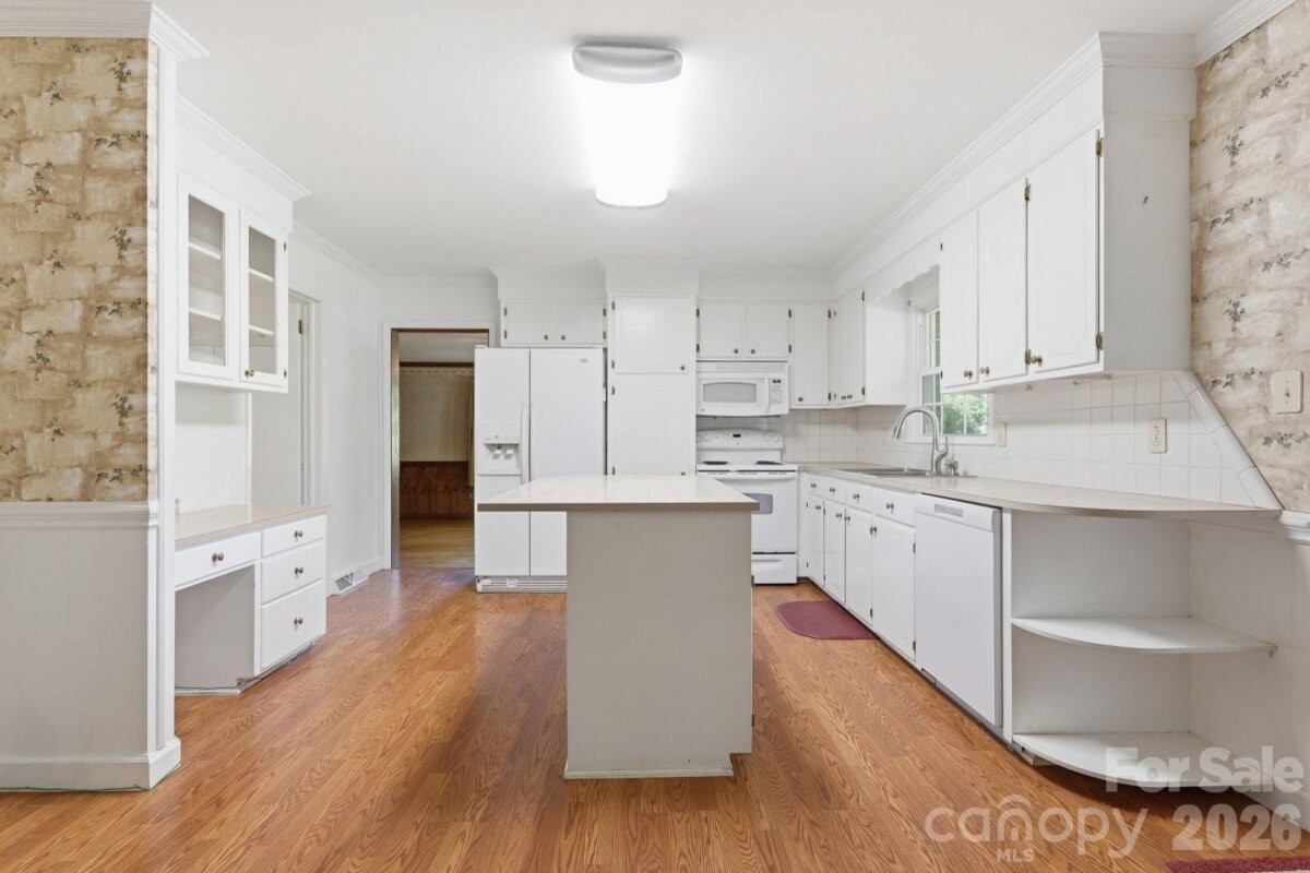Rare opportunity to own a peaceful "country escape" right on the Charlotte side of Huntersville! Situated on a sprawling 1+ acre lot, this charming 1,700+ sq. ft. mid-century brick ranch offers the privacy of a rural retreat with the convenience of being minutes from premier shopping and dining. The heavy lifting has been done for you: enjoy a "worry-free" purchase with a young HVAC (less than 3 years old), a roof tune-up, and extensive recent crawl space remediation. The septic was also pumped and inspected in 2023. Inside, the home features a freshly painted interior, beautiful original wood floors in much of home, an open kitchen with island, and a massive den addition for extra flex space. Step outside to a gardener’s dream featuring established Lenten roses, hydrangeas, irises, hostas and mature pecan trees. Complete with a double detached garage/workshop, three additional sheds, a deck, and a brick patio, this property perfectly balances classic character with modern peace of mind. This is the perfect place to spread out for someone with hobbies or lots of toys. Come see it and become part of this home's new chapter. Agent is one of heirs/part owner in estate.