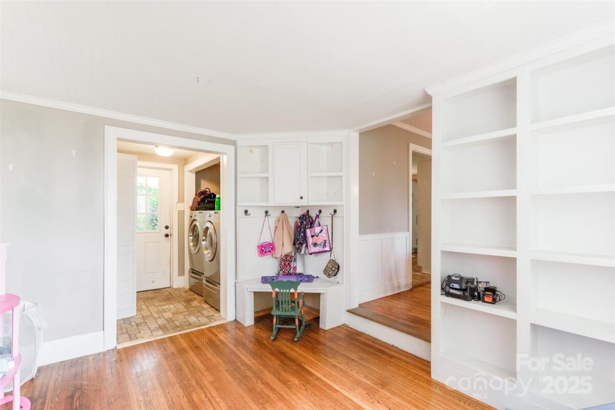Welcome home to comfort, character, and the freedom of no HOA. This inviting property blends timeless details with everyday functionality, featuring hardwood floors throughout the main living areas and all bedrooms for a cohesive, elevated feel. The kitchen is both charming and practical with a tile backsplash, butcher block countertops, and abundant cabinetry, making it ideal for daily living and entertaining alike. The dining room shines with classic wainscoting, while custom built-ins throughout the home add warmth, storage, and architectural interest. All bedrooms are thoughtfully located upstairs, creating a private retreat, while a convenient half bath on the main level enhances functionality. Step outside to a flat, usable yard with covered patios on both the side and back, offering multiple spaces to relax, entertain, or enjoy outdoor living year-round. Full of character and ready for your personal touch, this home offers a rare combination of charm, flexibility, and freedom — a place you’ll be proud to make your own