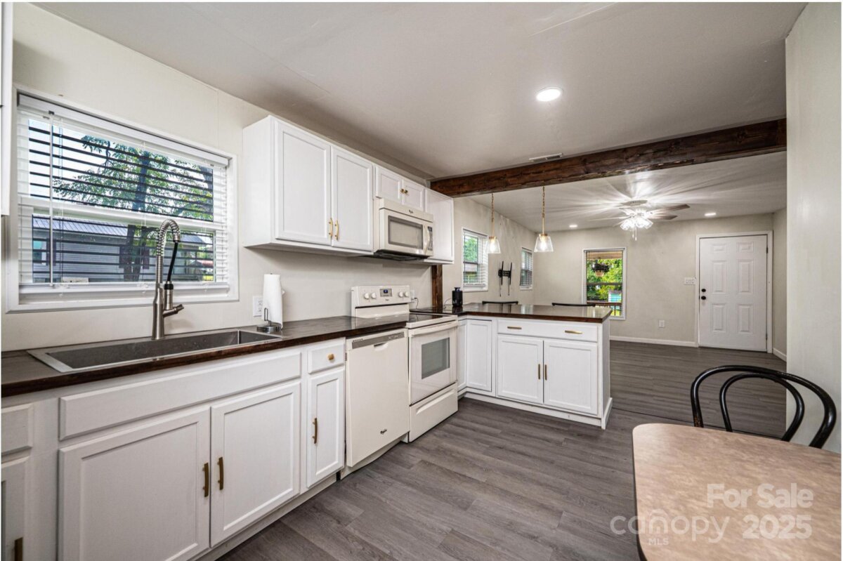 This 2 bedroom, 1 bath home has been thoughtfully updated inside and out. Improvements include new flooring, counters, cabinets, drywall, insulation, flat ceilings, windows, and siding. Per seller, the roof was replaced just prior to their purchase in 2014, and the HVAC was installed in 2015. Utility room is not counted in HLA as it does not have a heat register. A storage building will also remain with the property. Move-in ready and packed with updates, this home is a great opportunity in Valdese!