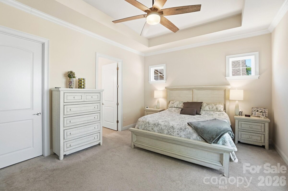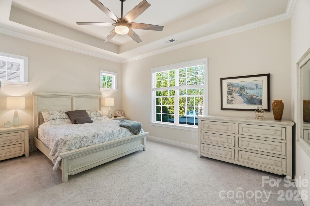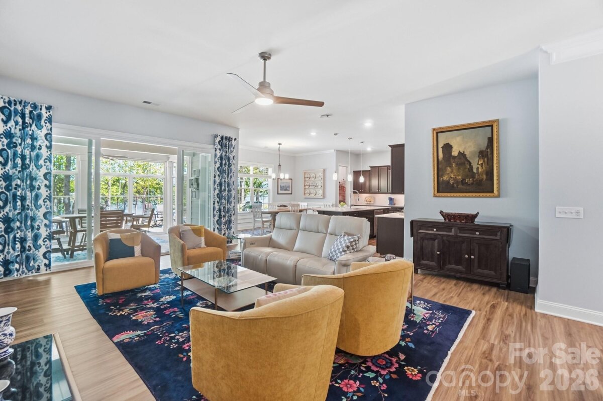 Enjoy SPECTACULAR VIEWS of Mountain Island Lake from your backyard and from nearly every corner of this home—whether you’re cooking, dining, relaxing in the upstairs Bonus Room, or unwinding in your private hot tub. This stunning 1.5-story Pinnacle Collection (Top of the Line Series) home offers 4 bedrooms, 3.5 baths, with 2,915 sq. ft. The main level features 10-foot ceilings, 8-foot solid-core doors, the primary suite, two additional bedrooms, and a dedicated office/study, creating an open, airy layout that lives beautifully without feeling segmented. The primary suite features a tray ceiling and two transom windows above the king-size bed, welcoming in soft morning light and a gorgeous water view the moment you wake. The suite also includes a custom-built walk-in closet and a spacious zero-entry shower with a built-in bench. The Family Room is an inviting place to gather, featuring a built-in fireplace, ceiling fan, and a stunning lake view that greets you the moment you walk through the door. The office/study is tucked away for privacy, ideal for work, organization, and storing important documents. The chef's kitchen and dining area are thoughtfully positioned to capture direct views of the lake, making everyday moments feel extraordinary. A 3-car garage provides exceptional flexibility, with the separate one-car bay ideal for a workshop, studio, or hobby space. Upstairs includes a private bedroom with a full bath and a spacious Bonus Room, perfect for movie nights, guests, or a second living area. The upstairs Bonus Room captures a gorgeous view, making it one of the home’s most inviting spaces. A large walk-in attic offers abundant storage for seasonal décor and more. Start your mornings with a cup of coffee as the sunrise stretches across the lake, enjoyed from the back patio or the extended screened porch with EZE Breeze panels. Outdoor living feels endless here—soak in peaceful water views, watch boats glide by, or take in the gentle rhythm of kayakers and paddleboarders, with the occasional burst of energy from jet skiers on the wide-open lake. Direct access to Picasso Point or Sunflowers Point is just steps away, making it effortless to hop onto the walking trails and enjoy the outdoors. Located in Imagery on Mountain Island Lake, a premier 55+ active-adult community, residents enjoy resort-style amenities including a heated outdoor pool, pickleball and tennis courts, fitness studio, sewing, library and pottery cabins, dog parks, meeting cabin, lakeside parks, game room, hard-surface and soft-surface walking trails, and a future marina. A full-time Lifestyle Director curates clubs, events, and activities—and lawn care is included in the HOA dues. A rare opportunity to enjoy lake living, luxury finishes, and an active-adult lifestyle all in one exceptional home.