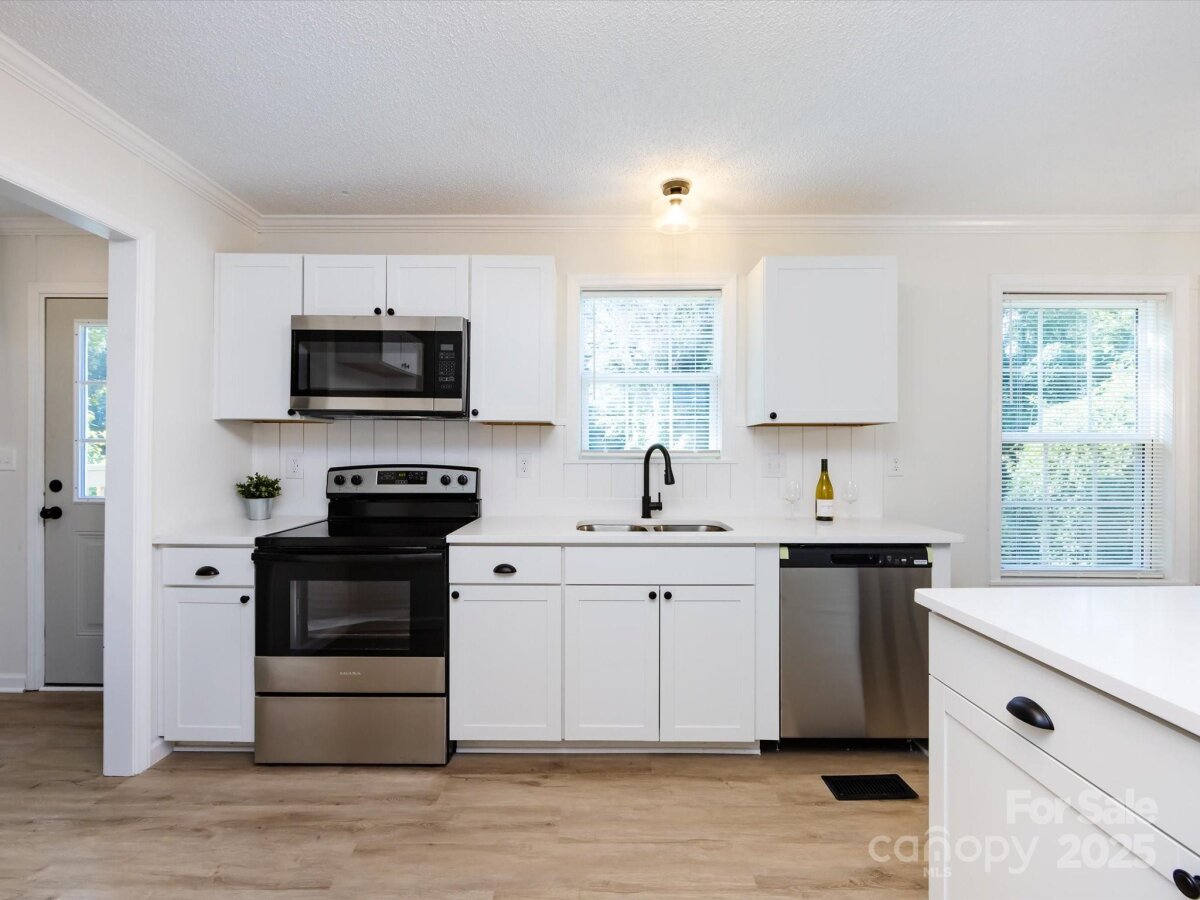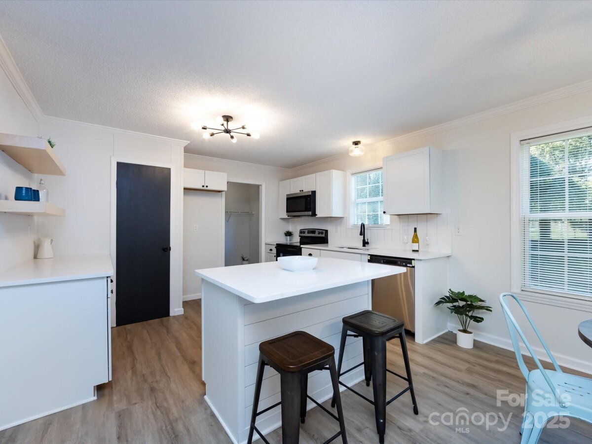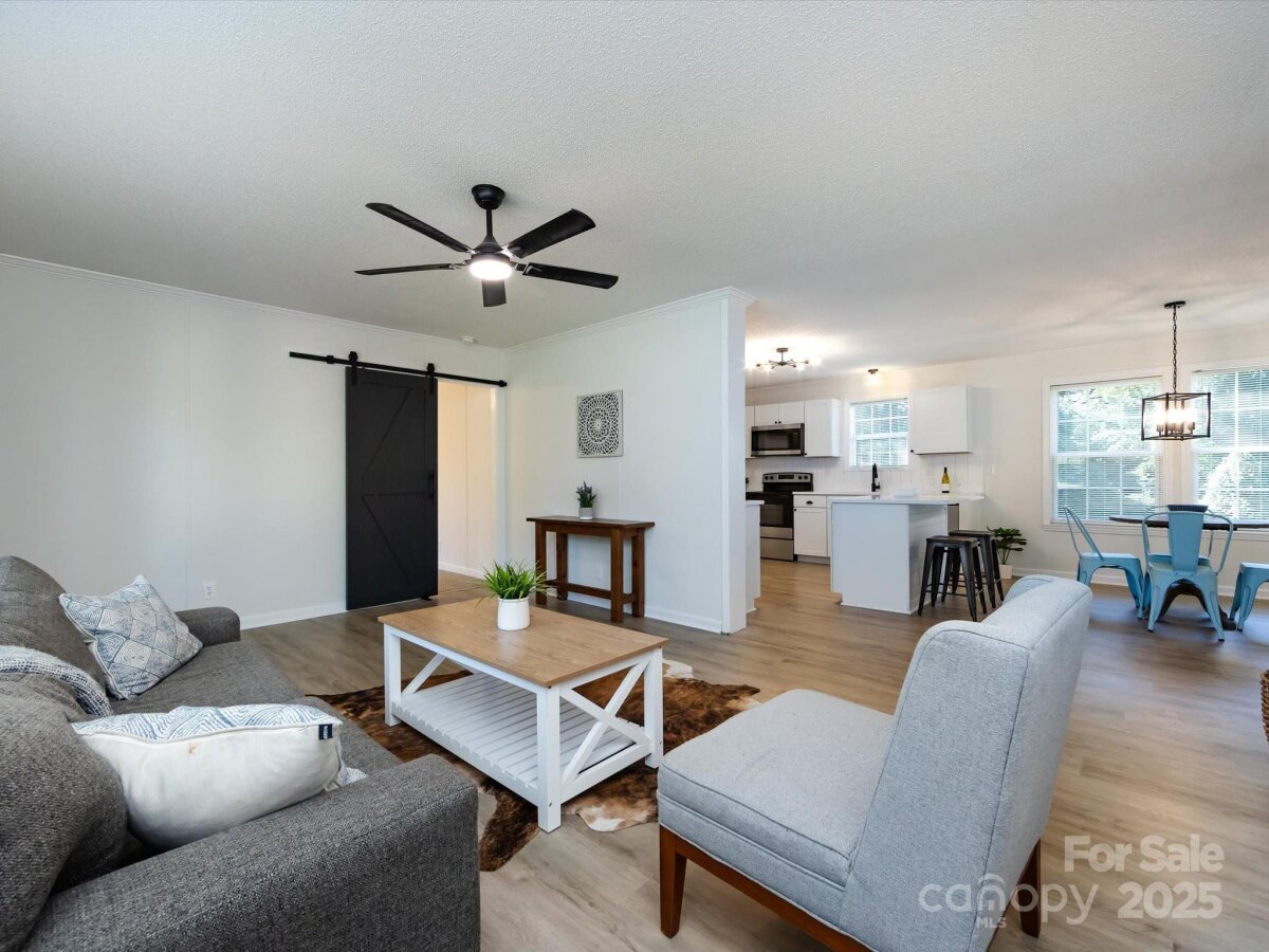 1% Mortgage Rate Buy Down Available! Discover turnkey living just minutes from Downtown Gastonia at 907 E 4th! This updated 4-bedroom, 2-bath home blends modern finishes with everyday comfort and a flexible layout that works for today’s lifestyles. Large 0.42 city lot! Step inside to an inviting, light-filled living area with new LVP flooring & carpet, fresh designer paint, and on-trend lighting. The kitchen shines with all new cabinetry, solid-surface countertops, shiplap backsplash, custom farm shelving, barn doors, custom island and new stainless steel appliances—perfect for weeknight dinners or weekend entertaining. The private bedroom wing features a spacious primary suite with an updated bath and generous walk-in closet space, plus three additional bedrooms that can flex as guest rooms, office, or playroom. Both baths are stylishly updated with contemporary fixtures and finishes. Enjoy easy indoor-outdoor living with a level yard ideal for gatherings, pets, and play—bring your grill and imagination! Thoughtful touches throughout—updated hardware, trim details, board and batten & ship lap accent walls—create a fresh, welcoming feel. Location matters, and 907 E 4th delivers: convenient to downtown dining and shops, greenways, FUSE district and parks, I-85 for quick commutes, and just a short hop to Charlotte attractions. Everyday essentials, schools, and healthcare are all nearby. With 4 true bedrooms, this home offers the space and flexibility hard to find at this price point in Gastonia. This one will go quickly!
