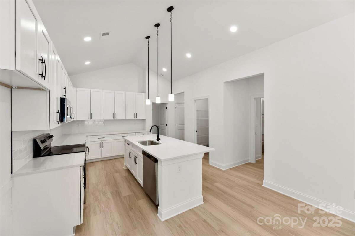 This light and airy NEW CONSTRUCTION gem blends modern design with everyday comfort. Featuring 3 bedrooms and 2 bathrooms, the open floor plan plus vaulted ceilings create a bright, spacious feel throughout. SUPER RARE 2 Car Garage for this area, phenomenal for keeping your cars protected OR great for additional storage. The chef-inspired kitchen is a true showstopper — featuring a large island, quartz countertops, white subway tile backsplash, stainless steel appliances, abundant cabinetry, and a generous pantry for all your storage needs. The separate laundry room adds convenience, while a side deck accessible from the dining area is ideal for morning coffee or weekend entertaining. Each bedroom offers sizable closets and thoughtful finishes, ensuring a perfect balance of style and function. Located minutes from shopping, dining, and major highways (601, 29, 49 & I-85), this home delivers both modern living and everyday convenience. Don’t miss your chance to own this brand-new beauty!