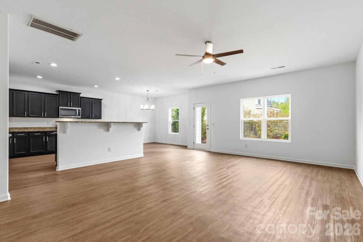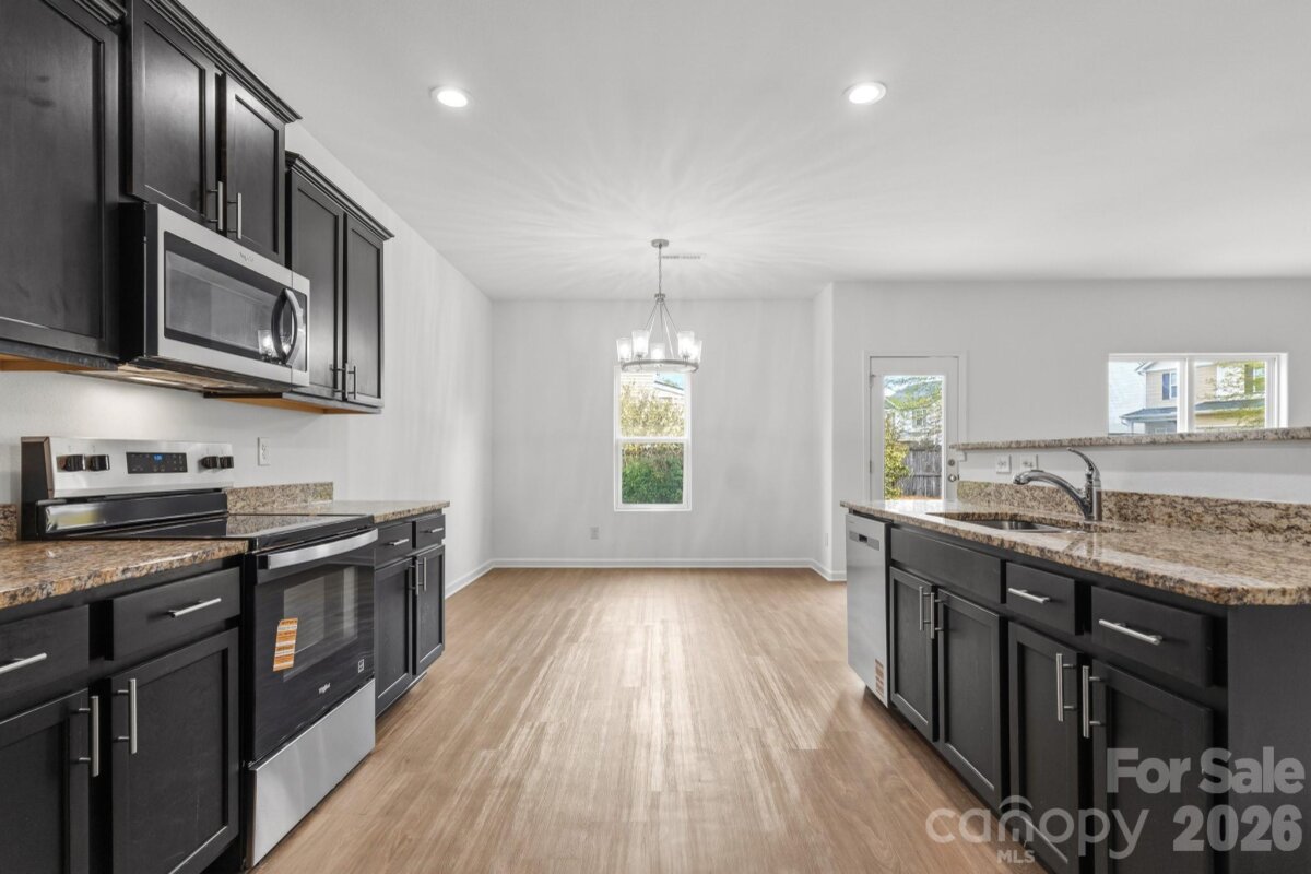 This 2 story house has been newly refreshed and is ready for you to make it your home! Walk into the home onto NEW LVP Flooring throughout the entire main floor! The Foyer entry leads you past the half-bathroom and into the main living areas that are nice and OPEN! Great sightlines between the Great Room, Dining Area, and Kitchen. Kitchen is AWESOME w/eye-catching black cabinetry, granite countertops, BIG island w/high top bar seating, & SS Dishwasher, Range, and Microwave! UP: The upstairs is warm & inviting with plush carpeting & hosts a loft space perfect for an office or play area! All bedrooms and the laundry are upstairs as well. The Primary Suite is a GREAT size featuring vaulted ceilings, BIG walk-in closet and full bath w/dual vanity, Garden Tub, and Shower! Both guest beds are ample in size and share the additional full bath w/single vanity & tub/shower combo. Backyard has full wooden privacy fence! Lots to see, come take a look today!