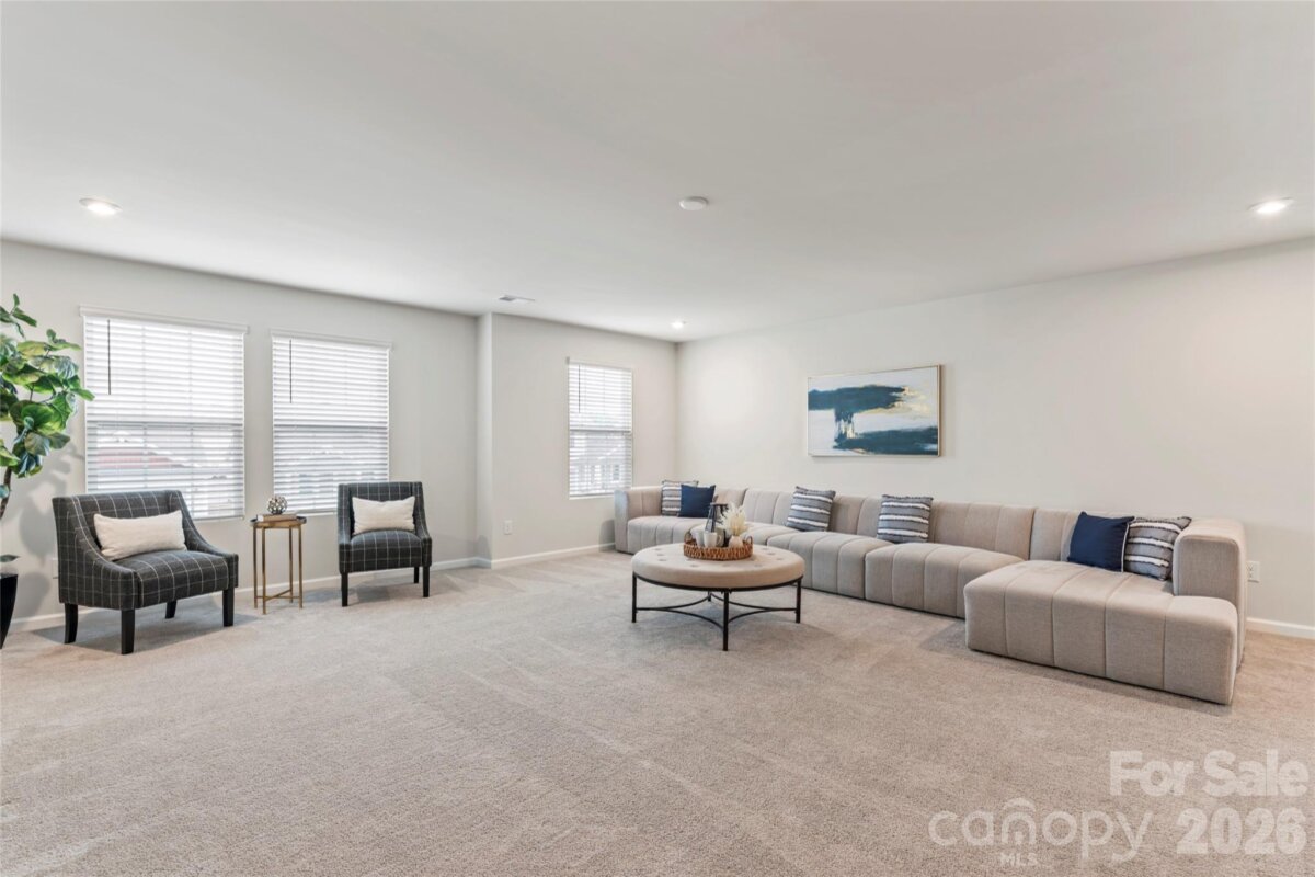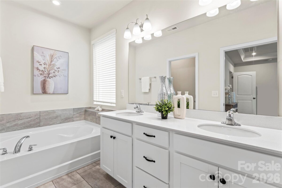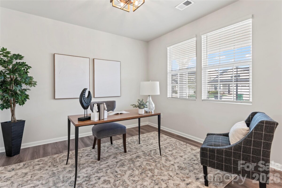 OH WOW! Your opportunity has arrived! Make plans to see everything this home has to offer before it is gone. Do not miss your chance to make this incredible property your HOME. From the moment you pull up, you will notice the charm and character. Warm brown tones, detailed trim, and a welcoming covered front porch set the tone and invite you to relax and stay awhile. Inside, the home showcases a thoughtful and functional layout. You are welcomed by a wide stretch of durable luxury vinyl plank flooring in a beautiful neutral tone that is perfect for both everyday living and pets. A generously sized office provides the ideal work from home setup and can easily be enclosed for added privacy if desired. Just off the garage entry, a perfectly placed drop zone makes everyday organization simple and convenient. The open kitchen, dining, and family room create an ideal space for entertaining or enjoying quiet nights in. Whether you are hosting guests or settling in for a movie night, this space flows effortlessly. The kitchen features a large island with breakfast bar seating, classic white cabinetry, a gas range, granite countertops, a stunning white herringbone tile backsplash, and an oversized walk in pantry. The primary suite on the main level offers a relaxing retreat with a spa inspired ensuite bathroom complete with tile flooring, dual vanities, a separate soaking tub and a tiled shower. The walk in closet includes a beautifully organized storage system. A main floor laundry room adds to the convenience. Upstairs, a massive loft area provides endless possibilities. Use it as a game room, media space, workout area, second living room, playroom, or additional office. Two more bedrooms and a full bathroom complete the upper level. Step outside to enjoy peaceful evenings on the covered back porch. The patio includes a gas connection for easy grilling and an expanded paver area for additional outdoor living space. The garage also features a hidden storage area along the back wall that is worth checking out. The community includes two pools, a cabana, and plenty of sidewalks for enjoying the neighborhood. Conveniently located with quick access to I-485 and I-77. WELCOME HOME!
