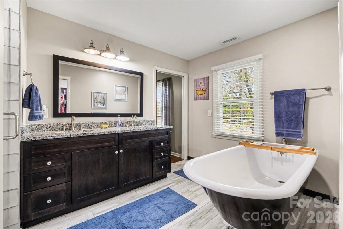 Set on over six picturesque acres in a highly desirable Charlotte location, this beautifully updated home offers a rare blend of space, privacy, and future opportunity. A long, welcoming front porch sets the tone, overlooking a wide, manicured lawn framed by mature trees and a peaceful, tucked-away setting. Inside, the home has been thoughtfully refreshed with a bright, open feel, featuring warm wood floors, a spacious living area anchored by a fireplace, and a stunning kitchen designed for gathering with a large island, custom cabinetry, and seamless flow into the main living spaces. Natural light pours in throughout, while flexible spaces allow for a home office, additional living areas, or quiet retreats. The home has been thoughtfully renovated in recent years, creating a cohesive, updated feel while still preserving its original character—beautifully showcased by the antique clawfoot tub in the primary bath, which adds a timeless sense of history and charm. Significant recent improvements provide both comfort and peace of mind, including all new windows throughout the home, along with updated gutters, downspouts, and a leaf guard system. The exterior was professionally painted in recent years, further enhancing the home’s curb appeal and overall condition. Outdoor living is where this property truly stands apart. A large deck overlooks the backyard and pool area, creating the perfect setting for entertaining or relaxing while taking in the surrounding landscape. The acreage itself is both beautiful and functional, with an irrigation system that services the yard and garden areas, supported by well water, while the home is connected to city water for everyday convenience. Established perennial beds, blooming seasonal plantings, and mature fruit offerings—including fig trees and berry patches—create a vibrant, ever-changing landscape. The property is further enhanced by a charming she shed ideal for a studio or retreat, along with a detached barn that offers flexibility for storage, hobbies, or future use. With over six acres and zoning that allows for subdivision, this is a unique opportunity to enjoy a private estate setting now while preserving long-term potential. All of this is set in a prime location just minutes from shopping, dining, and everyday conveniences, while still offering the feel of a private retreat. With easy access to major roadways and nearby amenities, the property combines the best of quiet, expansive living with the convenience of being close to everything Charlotte has to offer. Outdoor living is where this property truly shines. A large deck overlooks the backyard and pool area, ideal for entertaining or unwinding while taking in the surrounding landscape. The acreage offers a mix of open land and wooded privacy, enhanced by a charming she shed perfect for a studio or quiet retreat, along with a detached barn that adds character and endless possibilities for storage, hobbies, or future use. With over six acres and zoning that allows for subdivision, this property presents a unique opportunity for future development, investment, or simply enjoying the space as your own private estate. All of this in a prime location with convenient access to Concord Mills Mall, the Charlotte Motor speedway and other Charlotte amenities, making it a truly rare offering.
