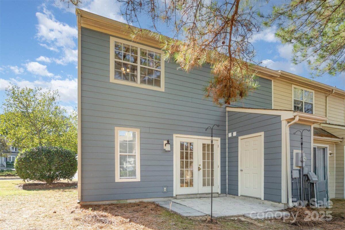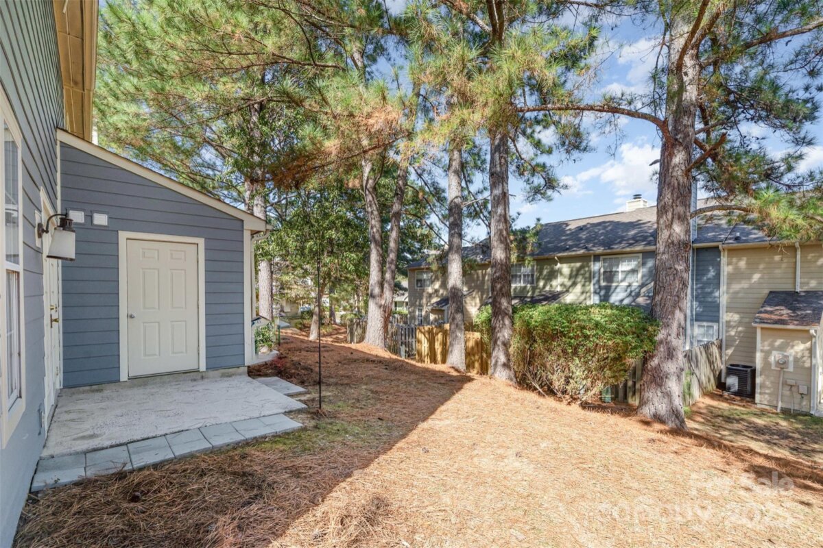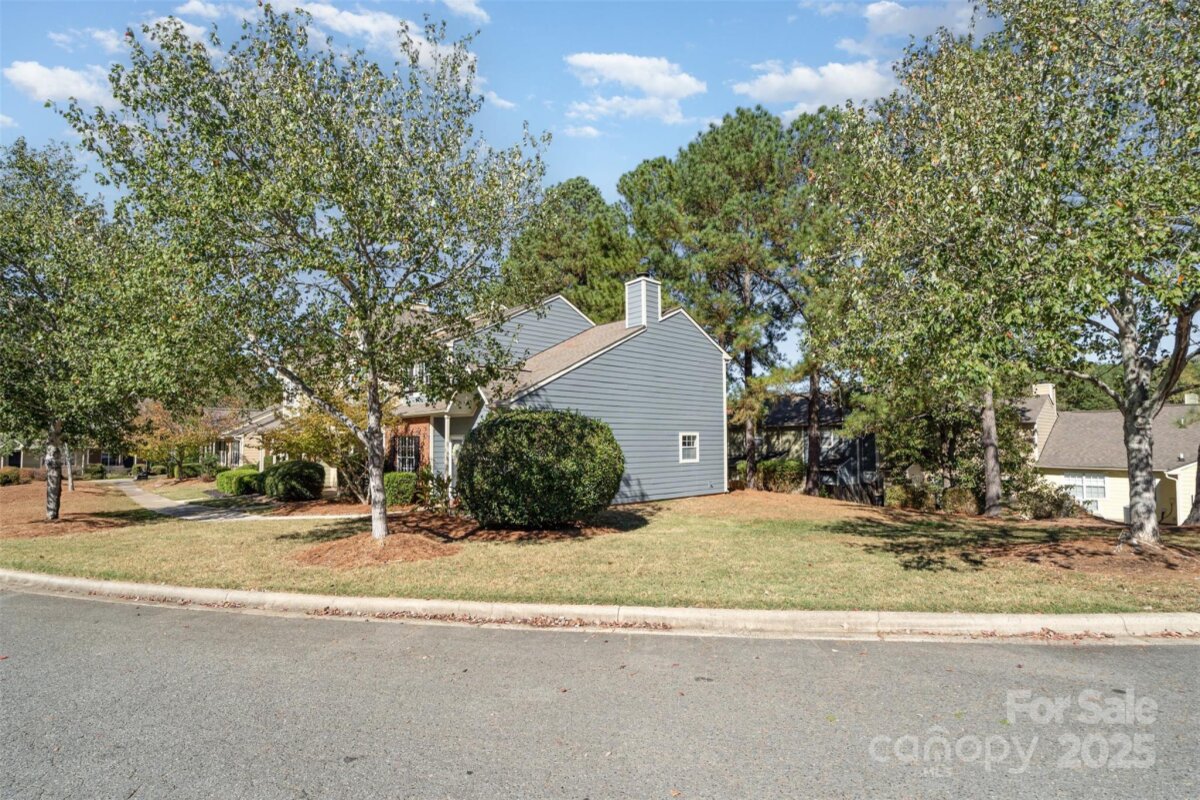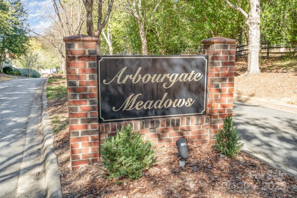 Updated, 3-bedroom, end-unit townhome in Arbourgate Meadows, Raintree! Primary bedroom is downstairs with updated bath and laundry ... two, spacious bedrooms share an updated full bath upstairs. New neutral interior paint throughout, and cool, Florida-tile flooring on main level with newer, engineered flooring upstairs. Living room has a beautiful vaulted ceiling and a wood burning fireplace. Kitchen sports newer, stainless-steel appliances. This end unit is situated very nicely in the community next to a large treed greenspace. Gives the illusion of a large yard, but you do not have to maintain it! The HOA does it for you! Covered front porch and a patio on the back. Custom dog kennel under the stairway and storage unit off patio. Fabulous location close to the Arboretum, Ballantyne and The Promenade areas! Community has its own pool separate from the Country Club which you can also join!