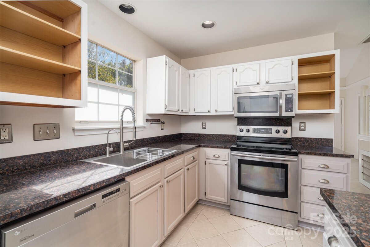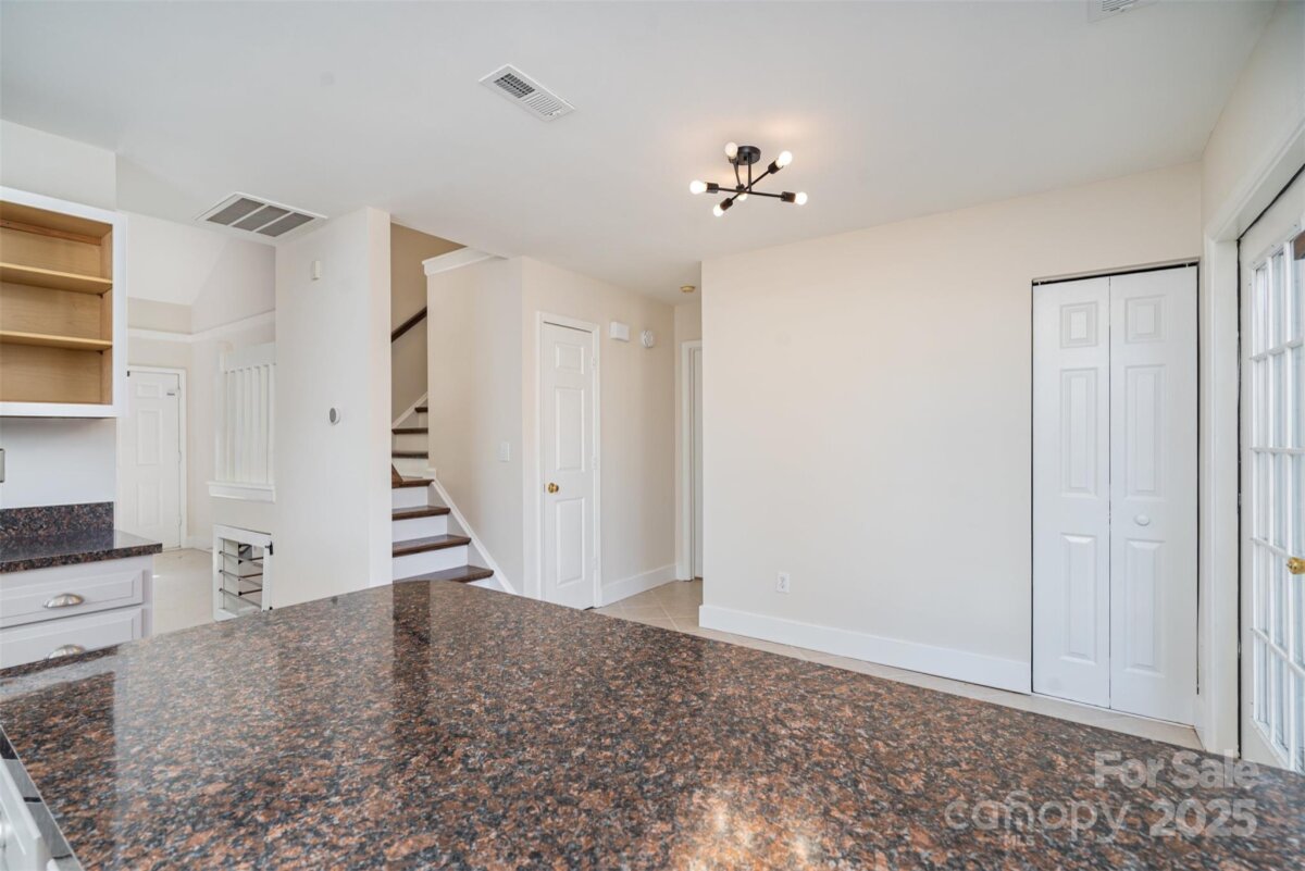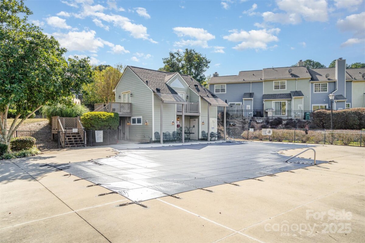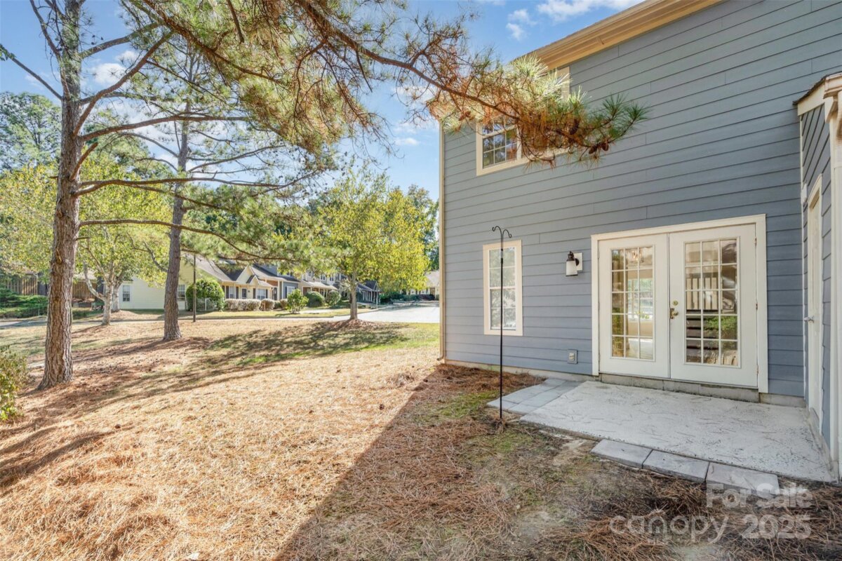 Updated, 3-bedroom, end-unit townhome in Arbourgate Meadows, Raintree! Primary bedroom is downstairs with updated bath and laundry ... two, spacious bedrooms share an updated full bath upstairs. New neutral interior paint throughout, and cool, Florida-tile flooring on main level with newer, engineered flooring upstairs. Living room has a beautiful vaulted ceiling and a wood burning fireplace. Kitchen sports newer, stainless-steel appliances. This end unit is situated very nicely in the community next to a large treed greenspace. Gives the illusion of a large yard, but you do not have to maintain it! The HOA does it for you! Covered front porch and a patio on the back. Custom dog kennel under the stairway and storage unit off patio. Fabulous location close to the Arboretum, Ballantyne and The Promenade areas! Community has its own pool separate from the Country Club which you can also join!
