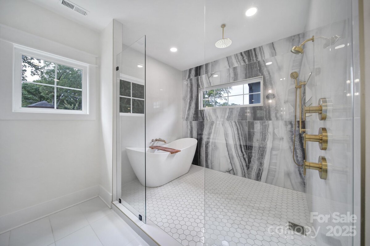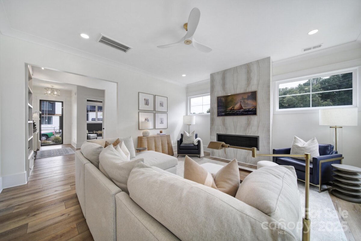 Built in 2022, this home sits in the perfect location for those who want everything South Charlotte has to offer. From shopping, restaurants, and parks this home is located near it all. The quaint luxury gated community has sidewalks throughout leading to the tree lined streets and neighborhoods of Sardis Road making it great for walkability. A short walk or drive to James Boyce Park, McAlpine Creek Greenway, and McAlpine Creek Park for those who like running, biking, or playtime activities. The main level has a beautiful gas fireplace in the living room, with a large modern chef's kitchen and island. It's the perfect space for entertaining or holiday events. The outdoor patio is perfect for quiet relaxation. The loft area upstairs allows for more living space with tons of natural sun light. The owner's suite is spacious with high cathedral ceilings, opulent spa like full bath with soaking tub, and large walk in closet. The laundry room has a modern layout with tiled sink area, folding table, and linen closet. A contemporary first floor office for those who work from home, and the location grants fast access to Uptown Charlotte. The perfect mix of modern and classic, you're minutes from anywhere you want to be in the city.