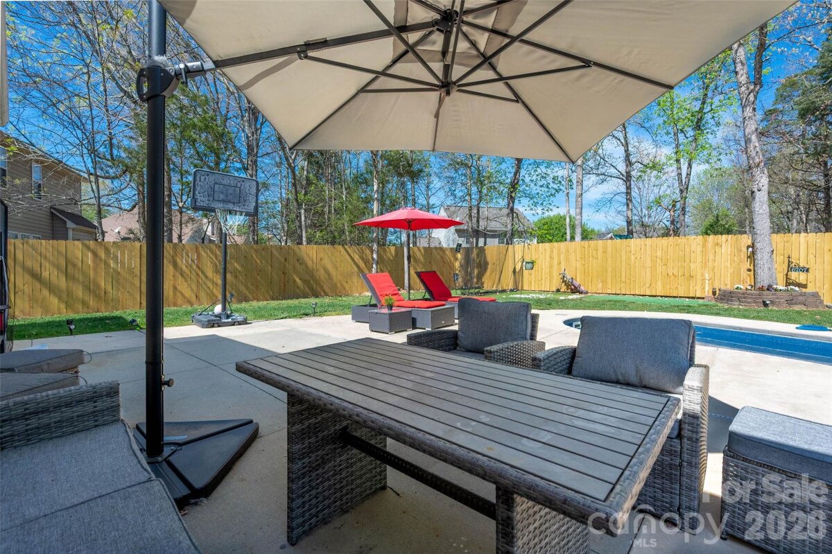 Nestled in the highly sought-after and established Eastfield neighborhood, this beautifully maintained home offers comfort, style, and exceptional outdoor living. Step inside to a warm and inviting interior featuring a desirable split-bedroom floor plan. The spacious primary suite is a true retreat, complete with a private ensuite bath featuring a relaxing garden tub with jets, and a luxurious walk-in closet. The newly updated kitchen shines with modern flooring, stainless steel appliances, and ample space for cooking and gathering. The open great room and dining area create the perfect flow for entertaining family and friends. Step outside to an incredible backyard oasis designed for relaxation and fun—featuring a pool and a golf putting green, ideal for hosting or enjoying quiet evenings at home. Ideally located with easy access to I-485, this home offers convenient connectivity to Uptown Charlotte and is just a short drive to the Northlake Mall area as well as the Concord Mills shopping and entertainment district. Don’t miss this exceptional opportunity, this home won’t last long!