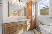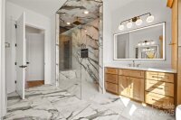 Discover exceptional craftsmanship in this owner-built home designed with modern comfort and timeless details. The open-concept layout is filled with natural light and anchored by white oak hardwoods and a linear gas fireplace. A chef’s kitchen features quartz countertops, large island with waterfall quartz, 36" gas range, custom hood, drawer microwave, and stylish fixtures. Each bedroom has a private bath, while the massive flex space and additional bonus room are perfect for entertaining. A second laundry space designed for a stackable washer and dryer is conveniently located on the second floor. a A secluded office with CAT5 wiring (also in bedrooms) supports remote work. Practical luxury includes a double-depth garage/workshop with 220V for equipment or EV charging, whole-house water filtration system, spray foam roof deck insulation, dual HVAC, and a new well and septic. Set on nearly an acre with mature trees, irrigation, and covered porches front and back, this property offers year-round outdoor living. Additional highlights: functional drop zone, spacious laundry/mud room, and just one minute to Mint Hill Founder’s Park.