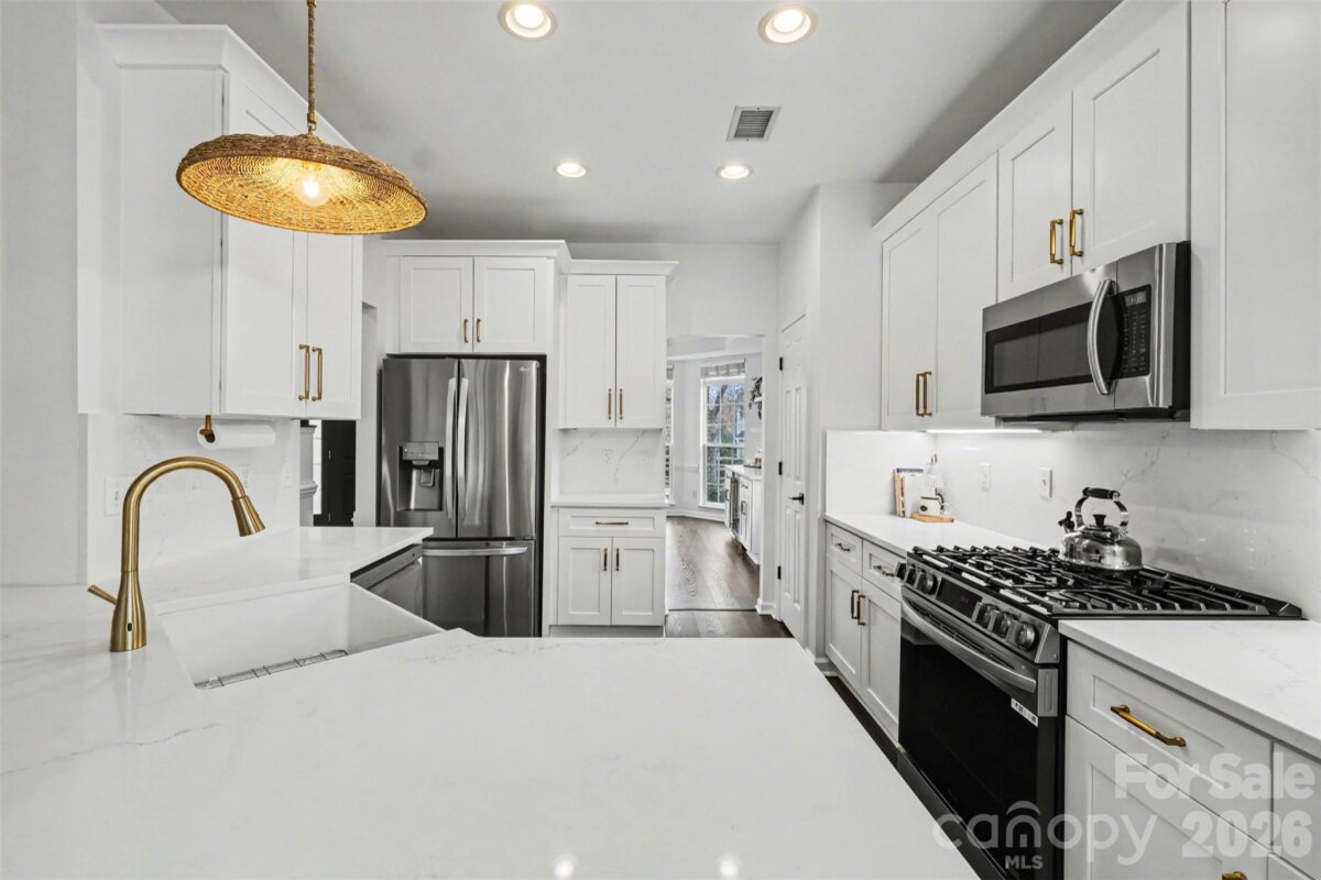 BOM by No fault of the sellers. This wonderful home is ready to be someone's special retreat. Set along the 4th tee of the golf course in the highly desirable Highland Creek community, this light-filled home offers sweeping fairway views and a peaceful cul-de-sac setting. A long driveway sets the home back from the street, creating a sense of privacy while remaining part of one of Charlotte’s most amenity-rich neighborhoods. Inside, the home feels bright and welcoming with fresh paint, new carpeting, and a fully updated kitchen that opens to a comfortable breakfast area—perfect for morning coffee or relaxed gatherings. The open floor plan blends comfort and functionality, making everyday living and entertaining feel effortless. The spacious primary suite is conveniently located on the main level featuring a walk-in closet and a beautifully renovated bathroom designed for comfort and ease. Upstairs you’ll find two bedrooms with custom closets along with a large, versatile bonus bedroom that can easily function as a home office, recreation space, or additional guest room. Step outside to a screened porch overlooking the golf course and expansive backyard, offering a tranquil backdrop for quiet mornings, evening conversations, or simply enjoying the view of the fairway. Residents of Highland Creek enjoy access to exceptional community amenities including four swimming pools, a fitness center and sports club, tennis and pickleball courts, parks, playgrounds, walking trails, and year-round neighborhood events. Community security and maintained common areas contribute to the neighborhood’s welcoming atmosphere. A two-car garage provides ample parking and storage. Conveniently located near shopping, dining, schools, and major commuter routes including I-77 and I-485. A rare opportunity to enjoy golf course views, main-level living, and the vibrant lifestyle Highland Creek is known for.
