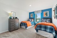 Welcome Home! Boasting 2570 heated square feet, this spacious and beautifully designed home features 5 bedrooms and 3 baths, with two bedrooms and a full bath conveniently located on the first floor. The open floorplan creates a warm and inviting atmosphere, perfect for hosting gatherings with family and friends. The kitchen is a chef's dream, complete with quartz countertops, a large island, and top-of-the-line appliances. Cozy up by the electric fireplace on chilly evenings and enjoy the peaceful sanctuary of the primary bedroom with its luxurious bath and spacious walk-in closet. Sit outside and enjoy your private backyard on a wooded lot. Built by one of the top ten builders in the country, you can trust in the quality and craftsmanship of this stunning home. Located in a desirable neighborhood with a community pool, dog park, playground, and activity field. Don't miss your chance to make this dream home yours!
