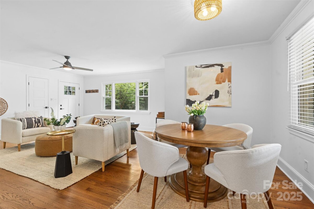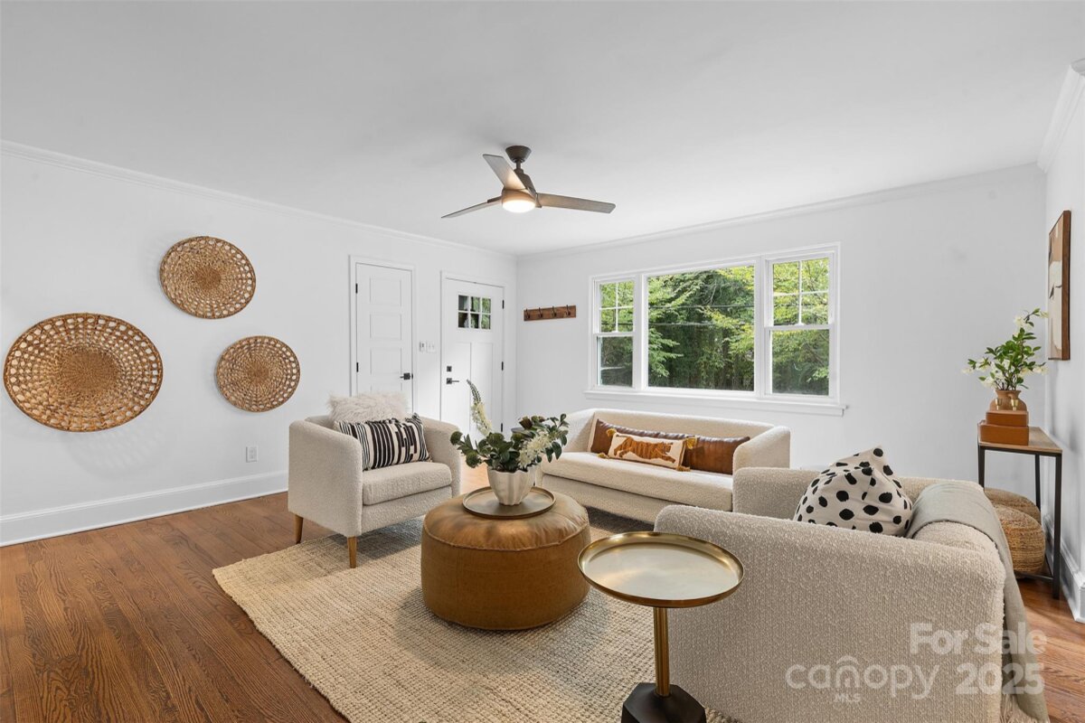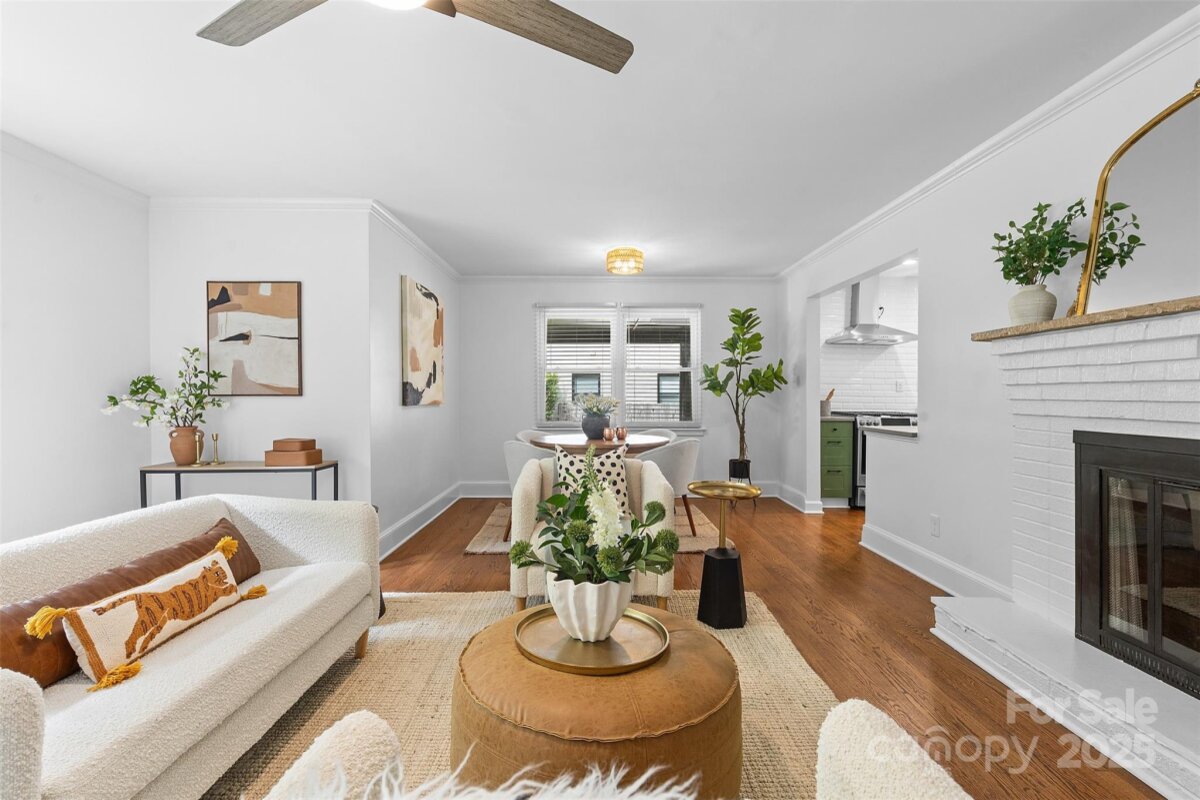 Discover 917 Scaleybark Road. A timeless, all-brick ranch located just minutes from South End, Uptown, and the Light Rail. This move-in-ready, 3-bedroom, 2-bath home combines classic charm with modern updates and unbeatable convenience. Inside, you’ll find hardwood floors throughout and a bright living area anchored by a classic brick fireplace. The kitchen features a subway tile backsplash, solid-surface countertops, stainless steel appliances, and a gas stove — perfect for cooking and entertaining. Both bathrooms have been stylishly updated, and each bedroom offers a comfortable, well-lit space for family, guests, or a home office. Step outside to a perfectly flat, fenced backyard surrounded by mature trees. A partially covered patio extends your living space and creates the perfect spot for morning coffee or weekend gatherings. With a new roof (2023), updated paint inside and out, and fresh landscaping, this home is truly move-in ready — an unbelievable opportunity at an incredible price!