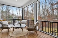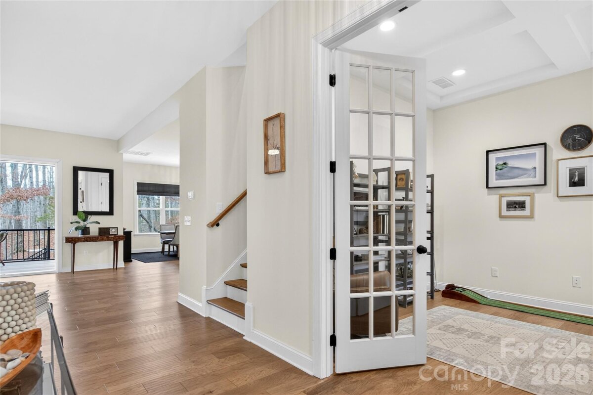 Built in 2023 by respected upscale builder Niblock, this custom home is positioned on a private 1-acre lot along the 10th fairway of The Club at Irish Creek. Located in a charming, tucked-away community, the property offers semi-private fairway views and a seamless blend of comfort and functionality. The main level features wide-plank flooring, abundant natural light, and an open floor plan ideal for everyday living and entertaining. A dedicated home office with glass French doors and coffered ceiling sits near the entry. The primary suite is located on the main level and is plumbed for a future tub, while a separate guest suite with walk-in closet and full bath provides flexible accommodations. The kitchen anchors the living space with rich forest green cabinetry, slab quartz countertops, high-end stainless steel appliances, custom lighting, and a large island overlooking the living and dining areas. Expansive multi-slide doors open to a screened-in porch overlooking the spacious, tree-lined acre. Upstairs includes a large secondary living area with additional flex space suitable for a library or second office, plus a third bedroom with oversized walk-in closet and full bath. Ample storage throughout and a 3-car garage add convenience. At the end of Tamary Way is a private drive to The Club at Irish Creek. A private, members-only club designed by Davis Love III, offering an 18-hole championship course, practice facilities, tavern and grill, and outdoor pool. Membership required.