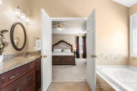 STUNNING 4BR/2.5BA | 2,650+ SF | CUL-DE-SAC IN COVETED BLAKENEY HEATH! Move-in ready and beautifully updated, this home features a dramatic two-story great room with gas fireplace and abundant natural light. The remodeled kitchen shines with granite countertops, tile backsplash, recessed and under-cabinet lighting, soft-close drawers, and upgraded stainless steel appliances. Custom-finished hardwood floors flow throughout the main level, which also includes a flexible first-floor bedroom with walk-in closet—perfect for guests, a home office, or flex space. Upstairs, a spacious loft provides additional versatile living space for work, play, or relaxation. Two secondary bedrooms share a convenient Jack-and-Jill bath. The primary suite features a tray ceiling and a beautifully renovated bath with frameless glass shower, tile flooring, updated fixtures, vaulted ceiling, and walk-in closet. Enjoy outdoor living on the large deck overlooking a fenced, professionally landscaped backyard—ideal for entertaining, relaxing, or play. Prime location with top-rated schools—less than 1 mile to Blakeney Shopping Center and minutes to StoneCrest, Waverly, Ballantyne Bowl, and I-485. Additional updates: Washer & Dryer convey (approx. 3 years old) along with Stainless steel refrigerator. New water heater installed in 2024. Exceptional space, updates, and location!