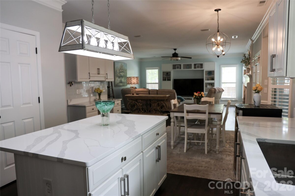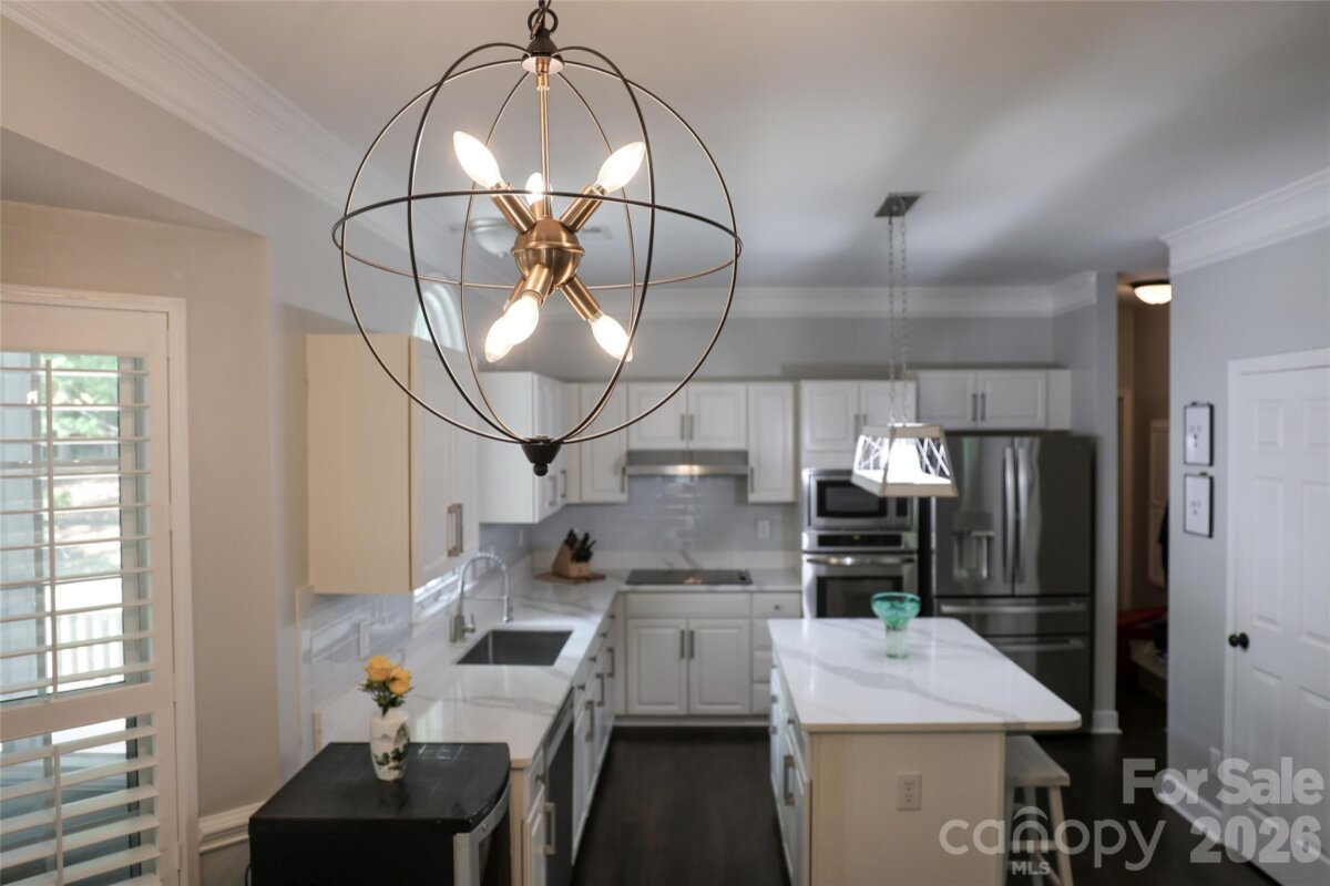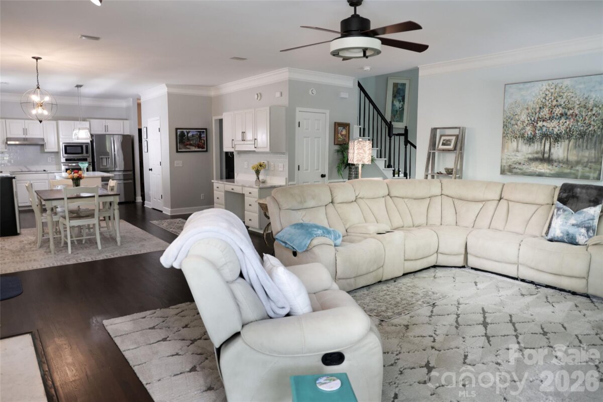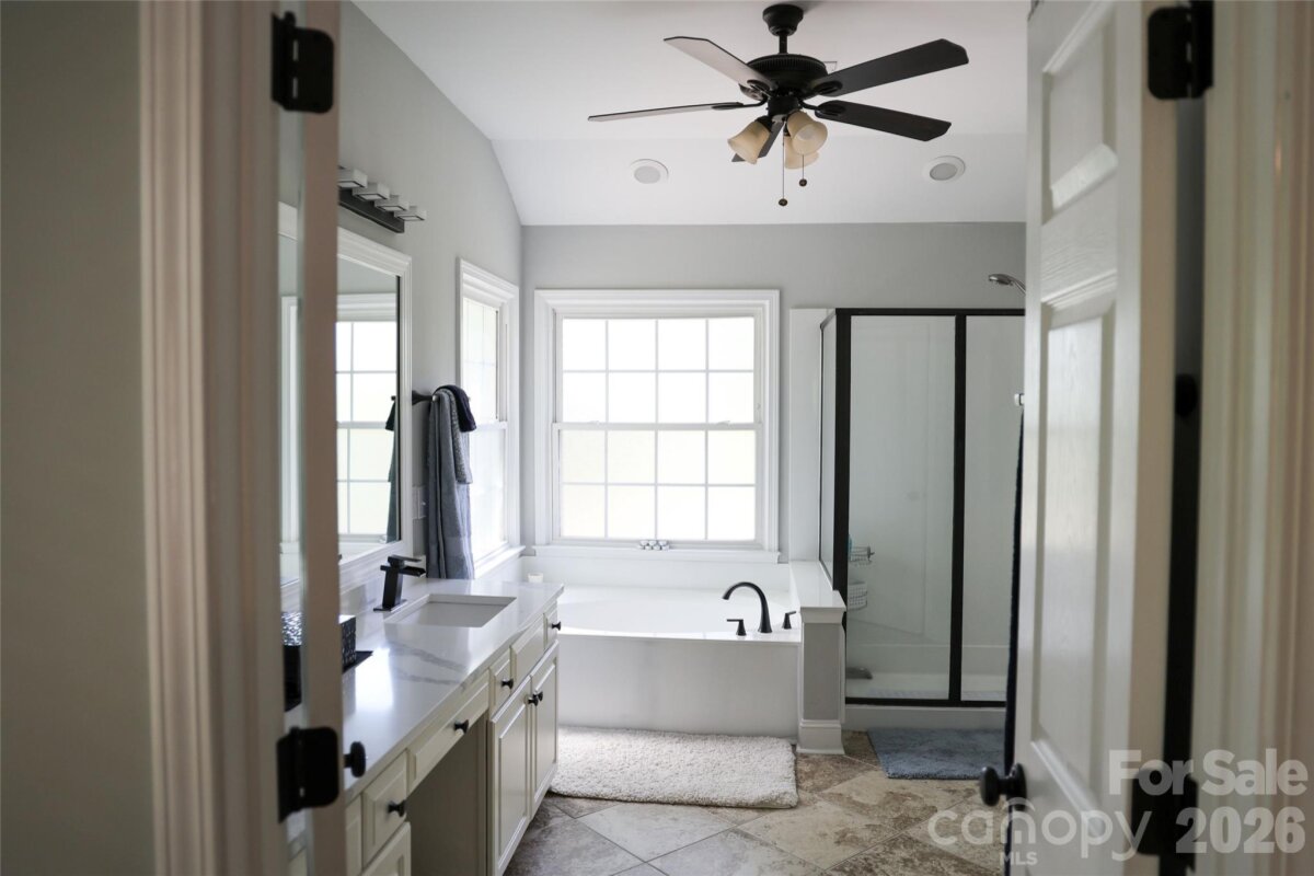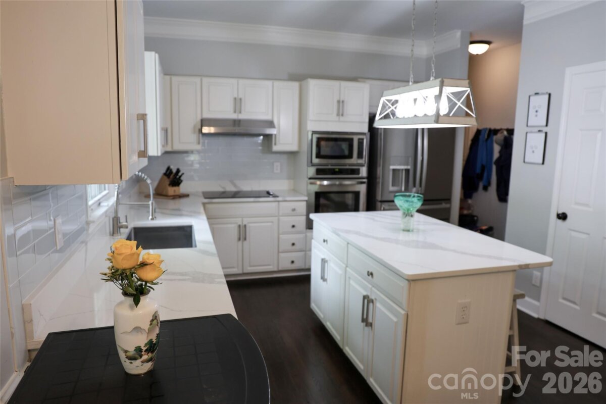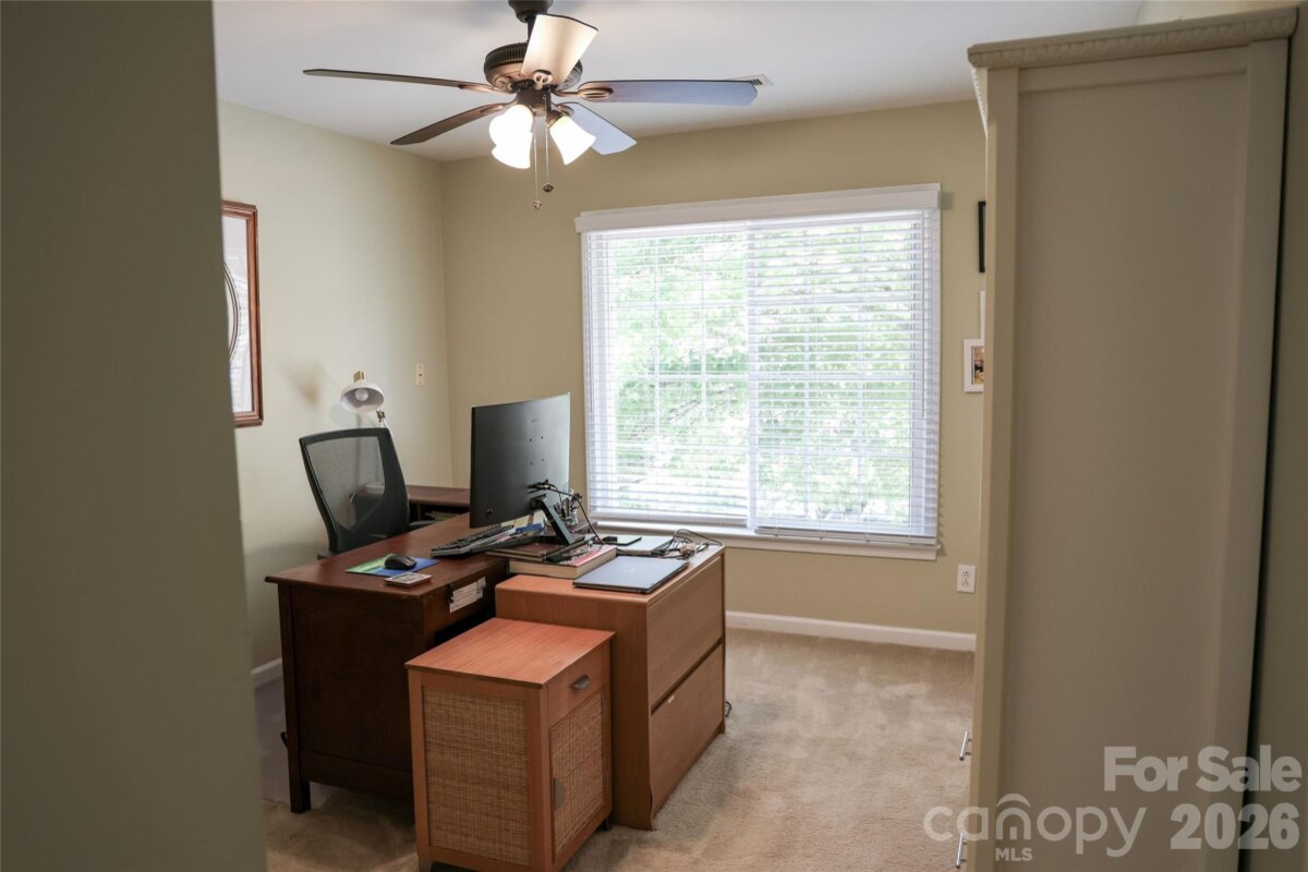 This Spacious Gem has Upgrades Galore. There are White Quartz Countertops in the Kitchen, Center Island, Desk Area, and Primary Vanity. The Kitchen Cabinets have been Refurbished and have the added Soft Close Feature. All SS Appliances include a New Bosch Dishwasher, Moen Disposal, and Long Neck Faucet. Also New is a 50 Gallon Gas Hot Water Heater, Expansion Tank, PRV, Faucets in the Primary Vanity and Powder Room. A Fresh Massive interior Paint Job and some Exterior items were just completed. ( The Build Sheet is in the MLS Attachments ). In addition, this Home Boasts 2 Bonus Rooms, a Screened Porch, Trey Ceiling in the Primary Bedroom, an Office on the Main Level, Built in TV Cabinetry in the Great Room, and an Oversized Garage. One of the Bonus Rooms is currently being used as an Exercise Room. If you like Ceiling Fans this Home has 11 of them..!! The Open Floor Plan flows nicely from The Great Room to the Kitchen with lots of Light. There is Large Crown Molding, Plantation Shutters, and 9' Ceilings throughout the Main Floor. Off of the Deck and Screened Porch is a mostly flat back yard. The Mcalpine and Four Mile Creek Walking Trails are literally less than 2 blocks away. Renewable Pest Control is $100/ Qtr. Top Rated Schools. Ballantyne Ridge is the New High School. The Owner Remodels and Flips Homes, and has kept this one in Tip Top Shape. Except for the carpet this is Move in Ready.