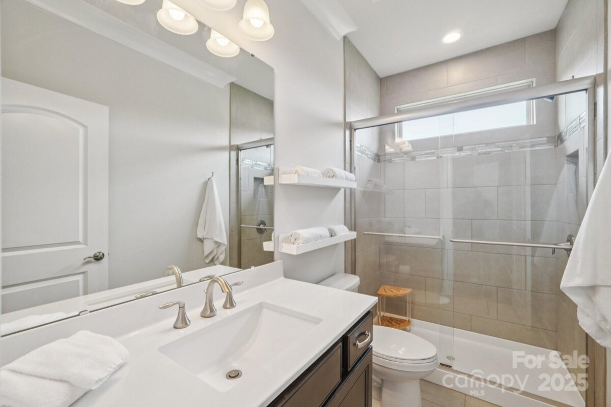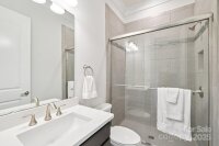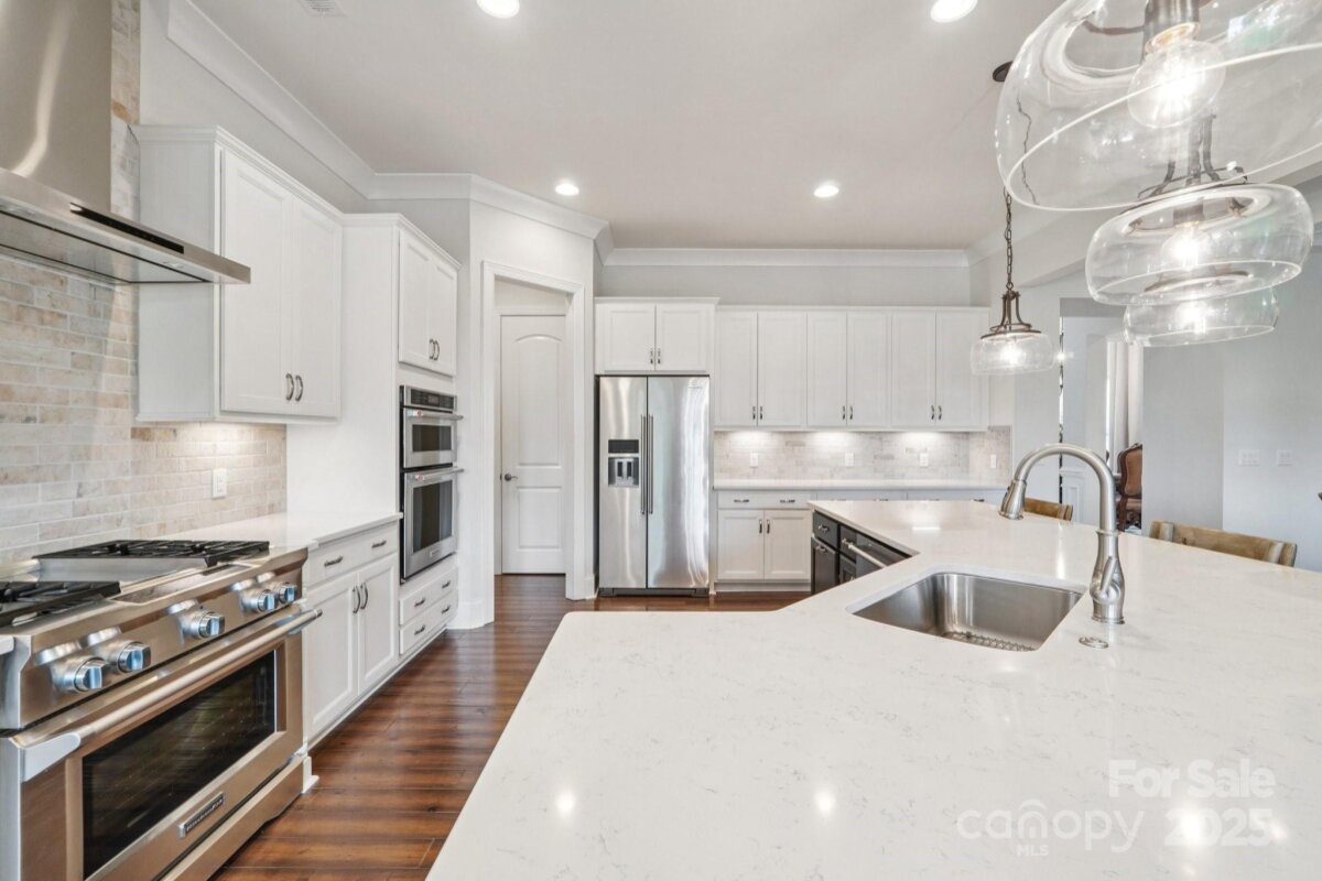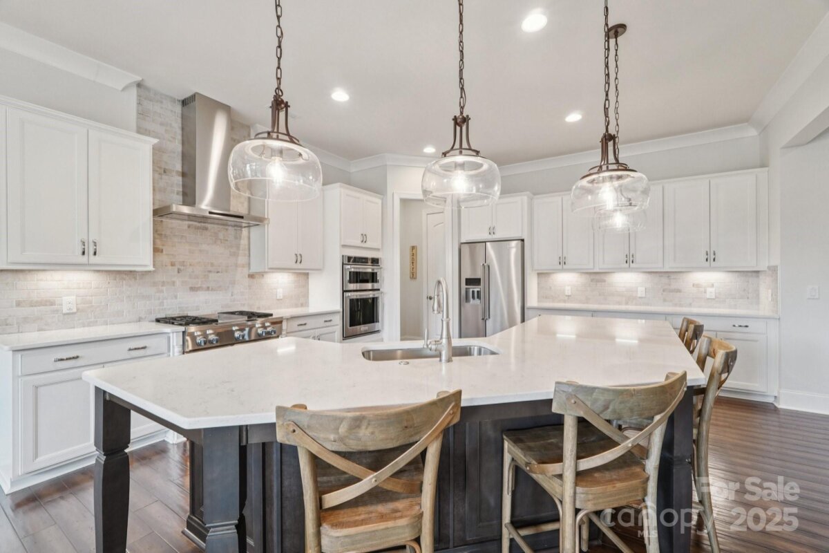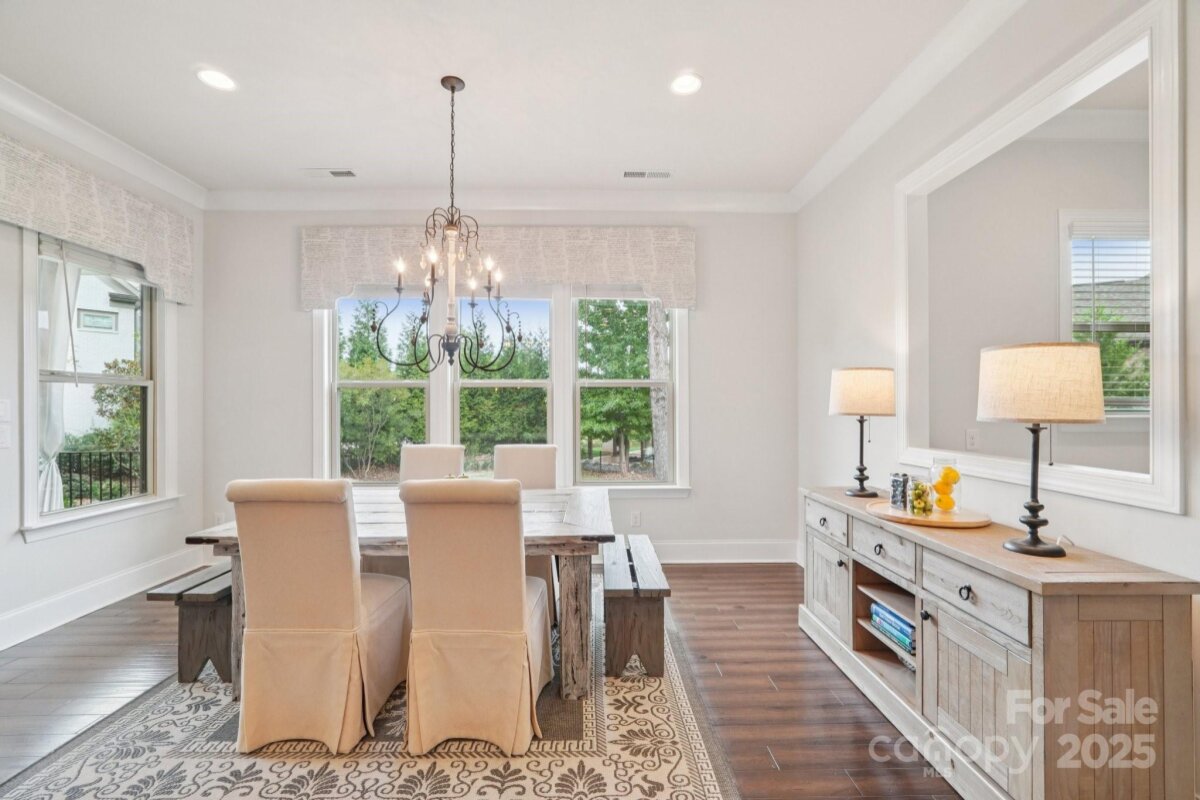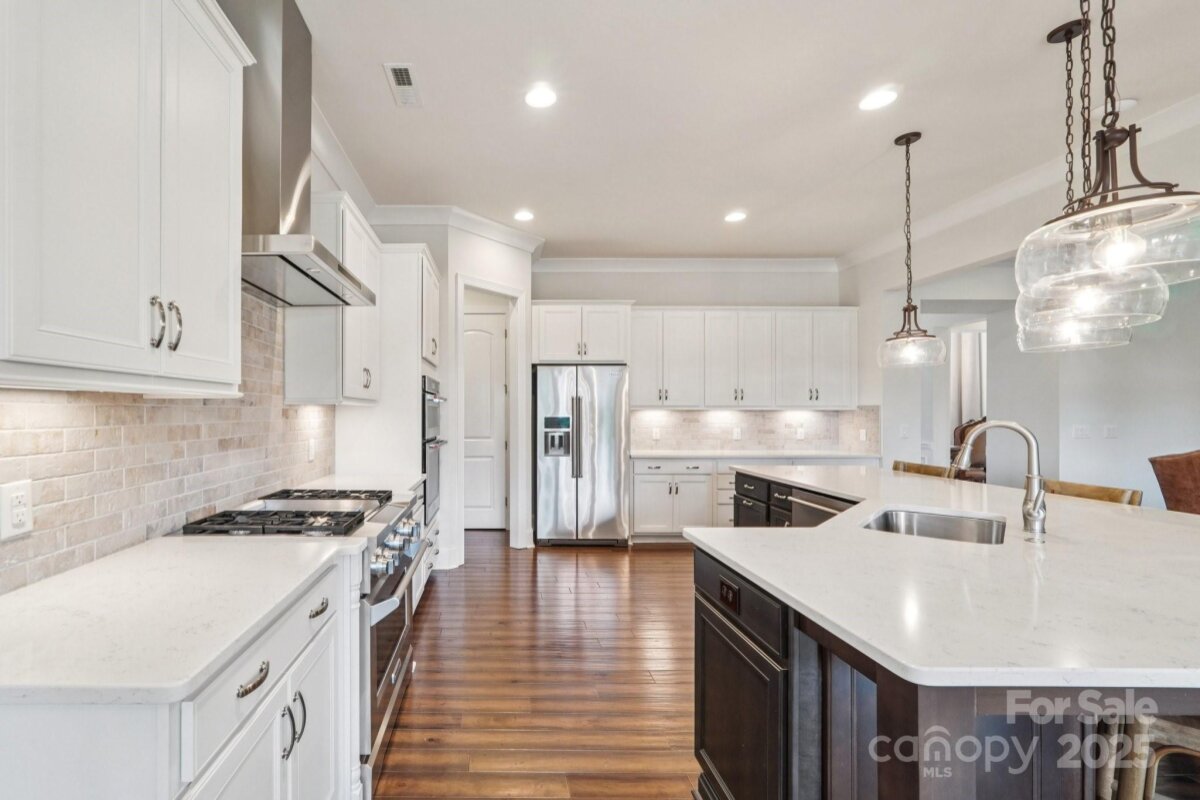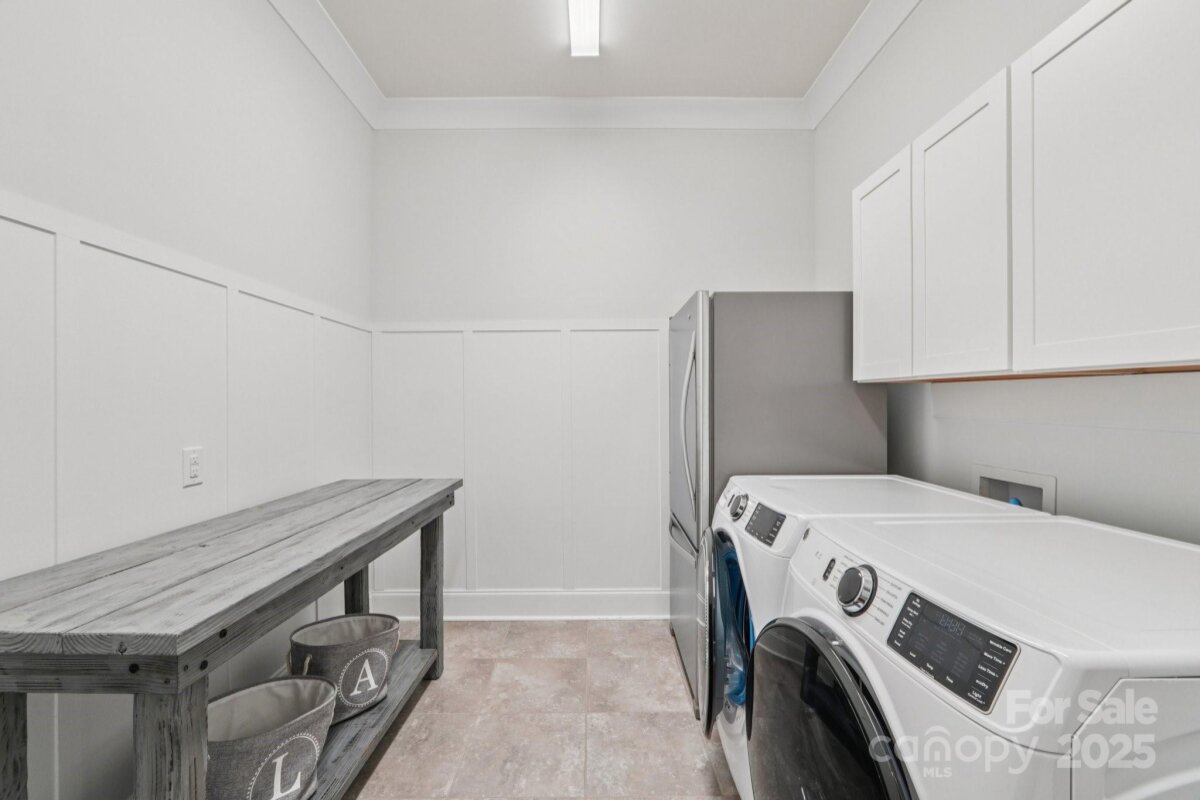 Experience refined living in one of Union County's prestigious gated communities, ideally located within the top-rated Marvin school district. This beautiful residence offers a perfect blend of elegance, comfort, and everyday functionality, designed for entertaining and effortless daily life. An inviting foyer with wainscoting and an elegant curved staircase welcomes you inside, while french doors open to a private home office/study. Architectural details are showcased throughout, from detailed moldings to the graceful flow of open living spaces. The dramatic two-story dining room is idea for hosting gatherings, featuring a butler's pantry and a large storage closet that could easily convert to custom wine storage. The spacious great room highlights a stunning stone fireplace, coffered ceiling, and seamless connection to the gourmet kitchen. Designed for the inspired home chef, the kitchen boasts a center island, abundant cabinetry, gas cook top, 2 electric stoves, microwave, walk-in pantry. Generous breakfast area has French door leading to a covered terrace and paver patio, perfect for outdoor dining and relaxation. A convenient office/computer station, private powder room, and thoughtfully designed laundry room with built-in cabinetry and board and batten trim enhance the home's function and charm. The drop zone offers practical storage with a shiplap wall, cubbies, and hooks for coats, shoes, and bags, plus an oversized storage closet. A guest suite on the main level provides privacy and comfort and ensuite bath. Pre-finished hardwood floors grace the main living areas, with tile in the laundry and baths, and carpet in the guest suite. Upstairs, the primary suite is a true retreat featuring a spacious sitting room-perfect for a private escape, nursery, or second office. The elegant ensuite bath includes two vanities, a soaking tub, an oversized shower, and two large walk-in closets. The upper level also offers a cozy loft with shiplap accent wall and hardwood floors, plus three additional bedrooms-each with bathroom access, carpet flooring and generous walk-in closets. Enjoy outdoor living int he private, fenced backyard surrounded by lush landscaping. Whether hosting friends, relaxing on the covered terrace, or dining al fresco under the stars, this backyard is your own personal haven. Additional highlights include abundant storage throughout, a secondary staircase offering convenient back access, and timeless craftsmanship in every detail. This exceptional home captures the best Union County living-an elegant, comfortable, and thoughtfully designed retreat in a secure gated community, just minutes from shopping, dining and the award winning Marvin schools. Refrigerator in kitchen conveys. Refrigerators in laundry room and garage do not convey.