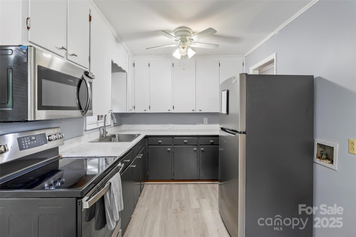This beautifully maintained 3-bedroom, 1-bathroom brick home combines modern updates with timeless charm. Located just off I-40 and Hwy 321, it provides easy access to Charlotte, Asheville, and more, making it perfect for commuters. Enjoy nearby shops and restaurants—all within a short drive. Inside, the home features new flooring in the kitchen and bathroom, while the original hardwood floors in most areas add warmth and character, refinished and stained (2023). The kitchen and bathroom have been updated, offering stylish, functional spaces. Recent upgrades include a new HVAC system (2023), updated electrical (2023), and a roof replacement in 2020, providing peace of mind for years to come. Along with spacious living areas, you’ll also find a spacious storage building on the property, ideal for tools, outdoor gear, or extra storage. Whether you're seeking a cozy retreat or a convenient location with easy access to everything, this home is move-in ready and waiting to make your own.