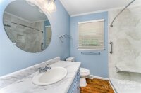 Welcome to this beautiful 4 bedroom, 2.5 bath home nestled on just under an acre of lush, landscaped property with no HOA. The expansive yard features a sturdy retaining wall and provides endless opportunities for gardening, play, or simply enjoying the peaceful setting. Inside, the popcorn ceilings have been removed and the ceilings freshly painted, giving the home a brighter feel. The kitchen flows seamlessly into the breakfast area and cozy den, making it perfect for everyday living and casual gatherings. A large great room with a charming bay window fills the space with natural light, offering an ideal spot for relaxing or entertaining guests. Throughout the home, you'll find a thoughtful mix of bedroom sizes to suit every need. Two generous bedrooms, including the primary, provide plenty of space for rest and unwinding, while the additional bedrooms are perfect for a home office, children's or guest room, or creative space. A walk-in attic offers convenient storage for all your seasonal needs. This home perfectly blends comfort, functionality, and outdoor beauty, ready for its next chapter.