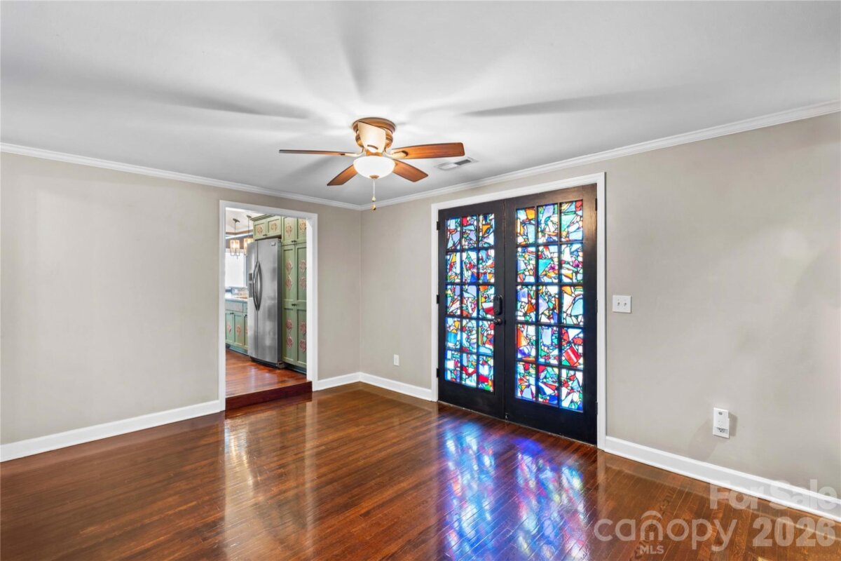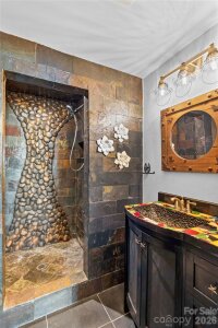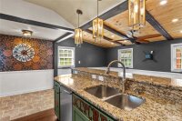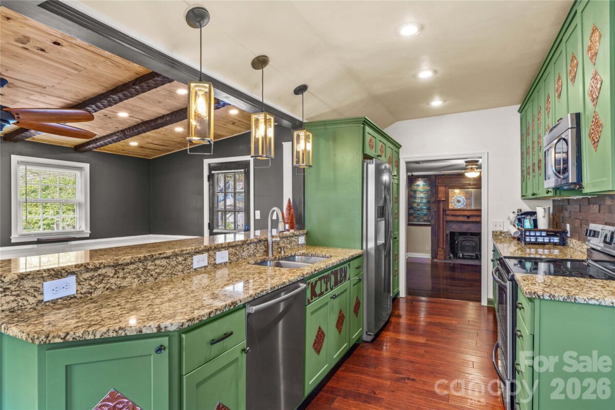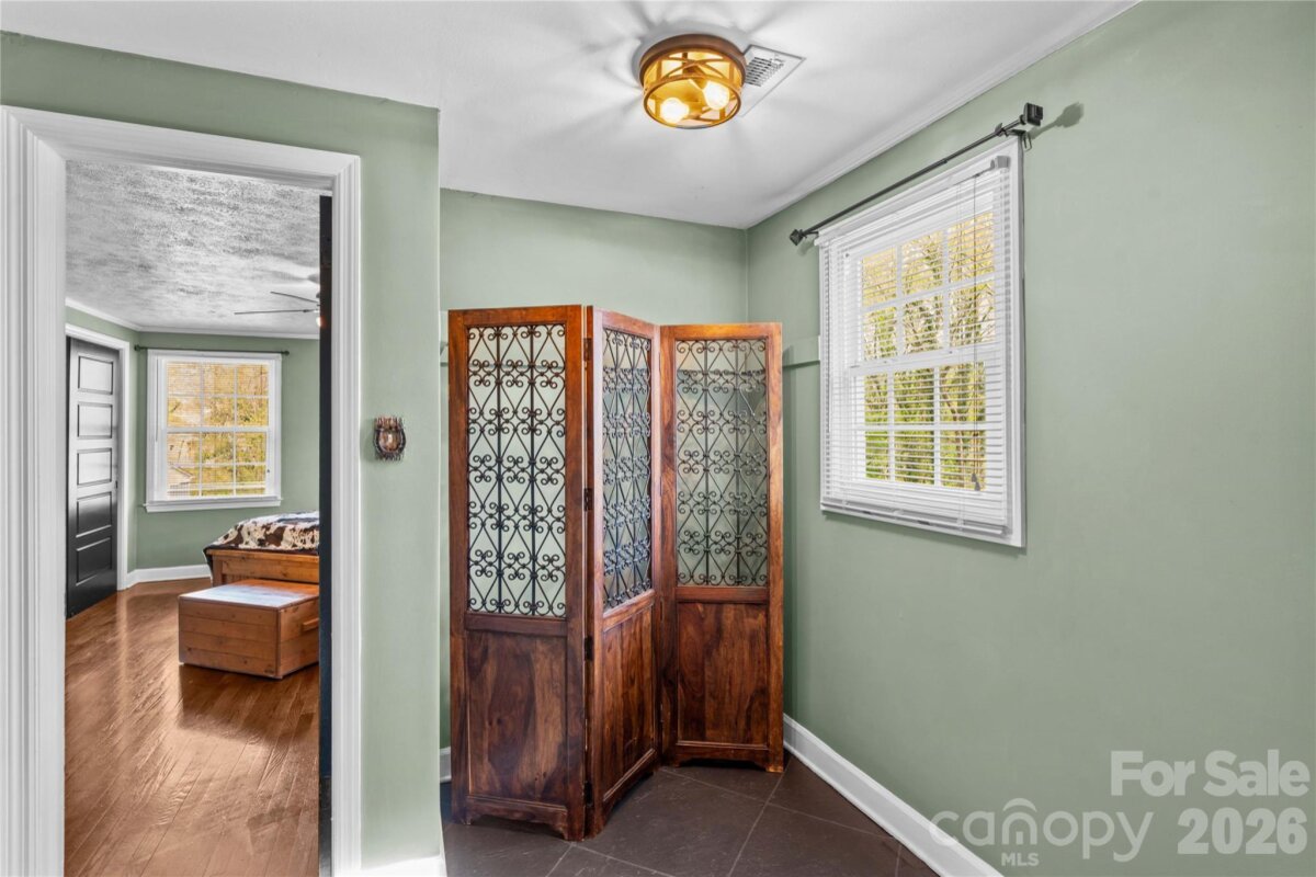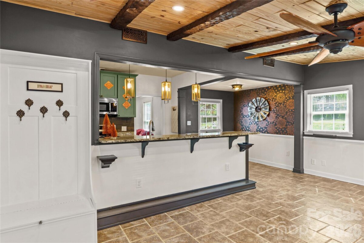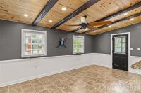 An ultimate engineered sanctuary! This self-sustaining masterpiece of a home is located in the heart of beautiful Statesville, NC! Powered by a 10.0 KW ground-mounted solar grid and paired with a 4-ton heat pump, it offers total climate control and sustainability, along with a lifetime metal roof and engineered rainwater management for a dry foundation and grounds year-round. Step inside to discover exquisite organic textures and refined details throughout. The dining room boasts shiplap ceilings and timber beams, a galley-style kitchen with a breakfast nook, and a spacious dining area for a 10-12 person table. For cozy evenings, snuggle up to the Vermont Castings woodstove, an excellent source of secondary heat and charm. This home is its own wellness retreat, especially with the custom-designed, spa-like primary bath. Enjoy your morning coffee on the glass-enclosed front porch. Downstairs offers endless possibilities, including a second living space perfect for an in-law suite or Airbnb. Outside is an oasis featured in multiple articles, a place you may never want to leave! The detached garage provides vehicle storage, workshop space, greenhouse capabilities, and more. The photos say it all—come see this hidden jewel before it’s gone! You’ll love the location, just a short walk to charming Downtown Statesville, pickleball and tennis courts, with quick access to I-77 and I-40!