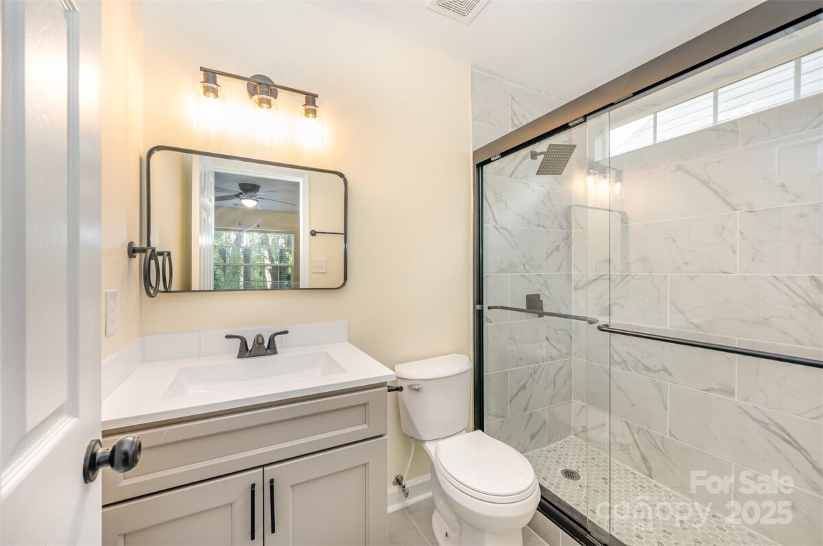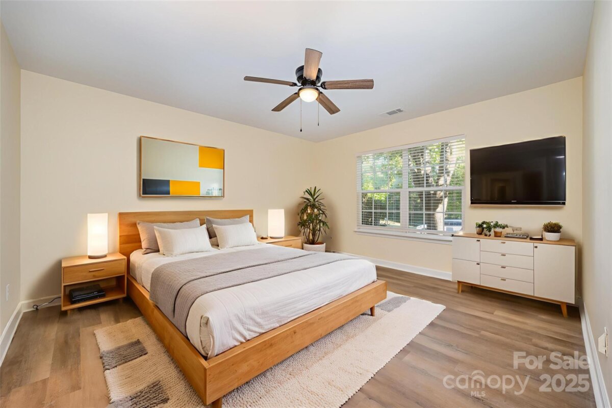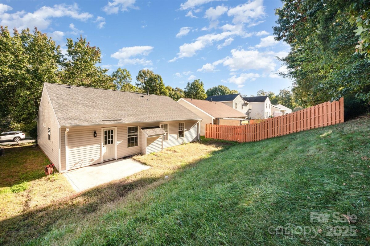 Beautifully bright and renovated ranch style home with private backyard space inside the I-485 loop. Home has been recently updated with fresh paint & luxury vinyl plank flooring and modern finishes throughout. Enter past the formal entryway and front facing guest room into the open living, dining & kitchen plan. Living room has focal gas fireplace and recessed lighting that leads into the gourmet kitchen. Fresh grey cabinets with slate black finishes plus matching S.S appliances, granite counters & kitchen island with bar seating make hosting family & friends a dream. Primary bedroom has attached full bath with beautiful glass & tile walk-in shower plus walk-in closet. 2 additional guest rooms could also be used as a home office space plus a full bath with upgraded vanity is perfect for family & guests. Back patio great for grilling overlooks the backyard space with rear tree-lining for privacy. Property is located just minutes from shops, restaurants & grocery stores making this the perfect single family home or addition to your investment portfolio. UPDATES INCLUDE HVAC & NEW ROOF + FRESH PRESSURE WASHING.