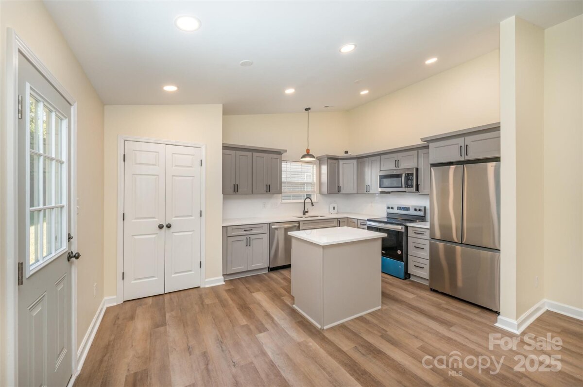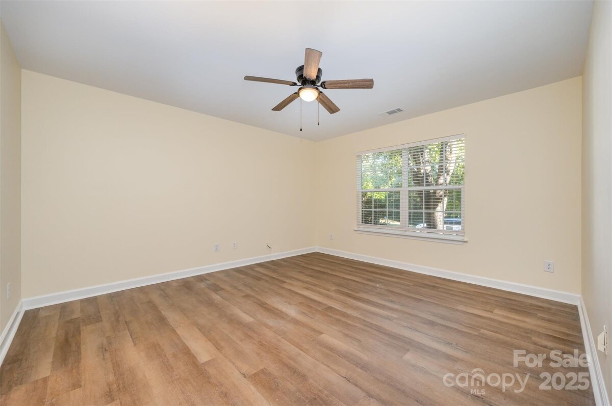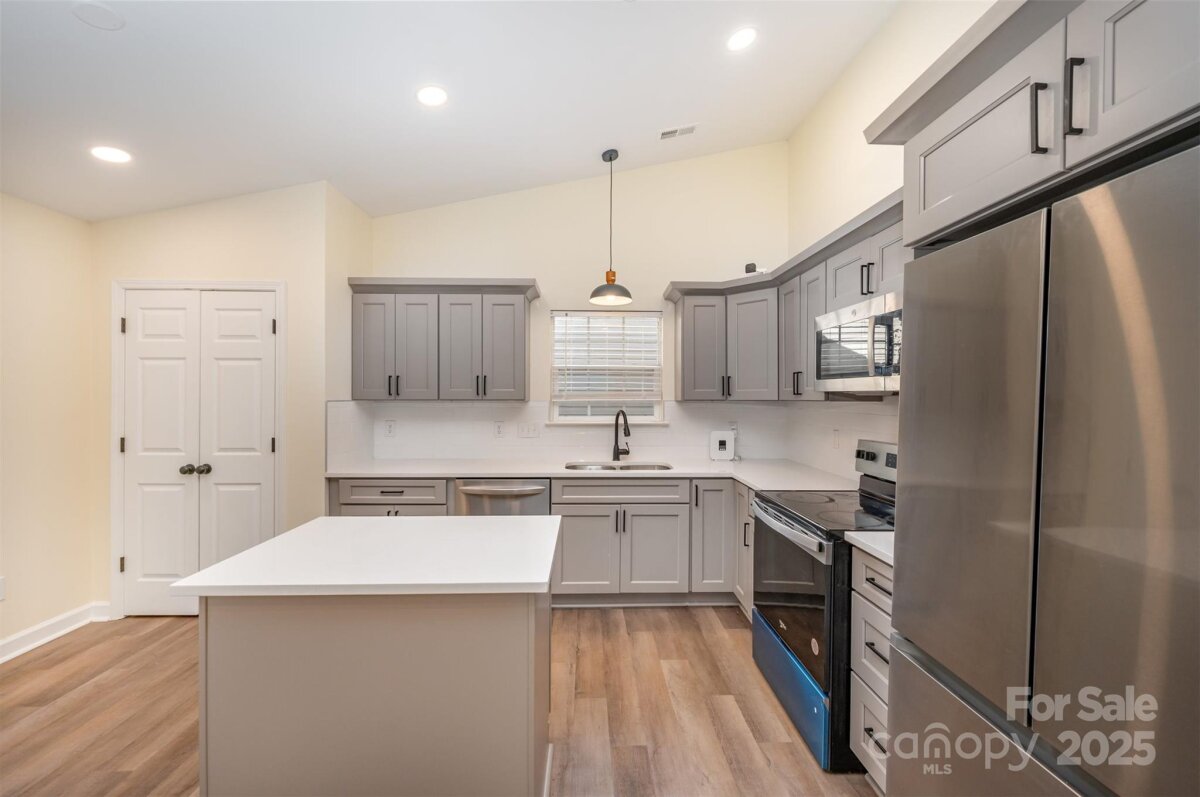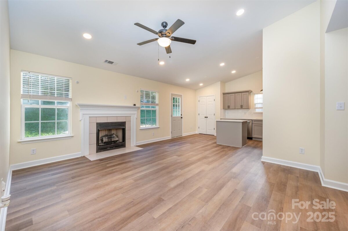 Beautifully bright and renovated ranch style home with private backyard space inside the I-485 loop. Home has been recently updated with fresh paint & luxury vinyl plank flooring and modern finishes throughout. Enter past the formal entryway and front facing guest room into the open living, dining & kitchen plan. Living room has focal gas fireplace and recessed lighting that leads into the gourmet kitchen. Fresh grey cabinets with slate black finishes plus matching S.S appliances, granite counters & kitchen island with bar seating make hosting family & friends a dream. Primary bedroom has attached full bath with beautiful glass & tile walk-in shower plus walk-in closet. 2 additional guest rooms could also be used as a home office space plus a full bath with upgraded vanity is perfect for family & guests. Back patio great for grilling overlooks the backyard space with rear tree-lining for privacy. Property is located just minutes from shops, restaurants & grocery stores making this the perfect single family home or addition to your investment portfolio. UPDATES INCLUDE HVAC & NEW ROOF + FRESH PRESSURE WASHING.
