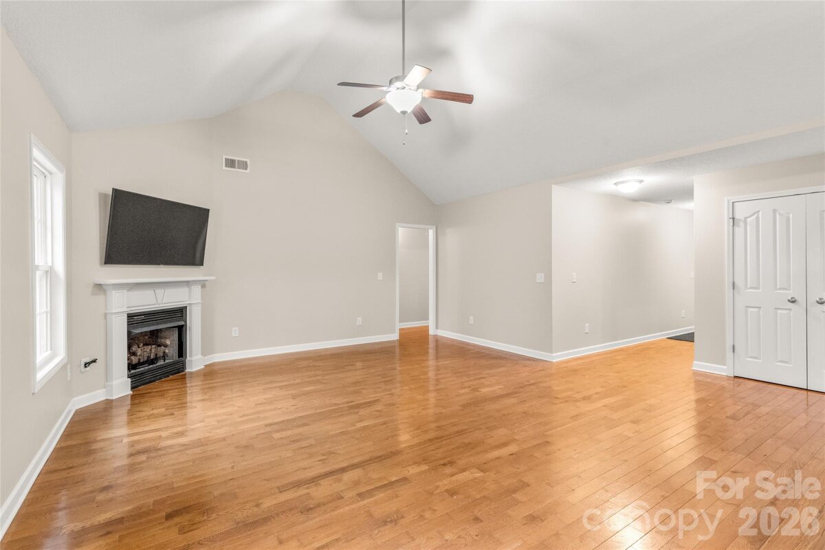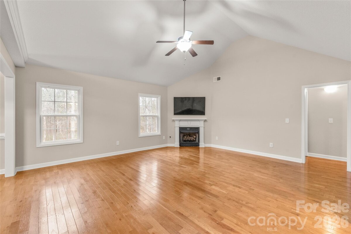 Welcome home to this inviting ranch-style property set on a picturesque 1.3-acre lot in Rock Hill. A large front yard creates a welcoming first impression, while the wooded backyard provides a peaceful, private backdrop. Enjoy the benefit of space and privacy while remaining conveniently close to shopping, dining, and everyday amenities. Inside, fresh neutral paint and hardwood floors create a bright, comfortable atmosphere. The open living area features vaulted ceilings and abundant natural light, offering an airy feel ideal for both everyday living and entertaining. The spacious primary suite provides a relaxing retreat with generous room to unwind. A well-finished room over the garage adds valuable flexibility and can be used as a home office, bonus room, or additional living space. Recent exterior updates include a new roof, gutters, and siding (2024), adding peace of mind and enhancing curb appeal. Step outside to enjoy expansive front and back yards with plenty of room for outdoor activities, gardening, or future enhancements. With no HOA and generous acreage, this property offers a rare combination of freedom, space, and convenience. Schedule your showing today.