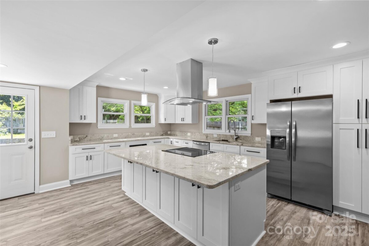 Completely reimagined from the ground up, this stunning 3 bed / 2 bath ranch offers the charm of 1934 with all the comforts of today. Fully remodeled inside and out, the home features a new roof, HVAC, luxury vinyl flooring, custom trim, and all-new sheetrock. The gourmet kitchen boasts a large island, stainless steel appliances, and an under-counter microwave. The master suite includes a walk-in closet with custom shelving and a designer tile-and-glass shower. Enjoy peaceful privacy in the spacious backyard with no HOA or restrictions. A charming front porch with brick columns invites you to relax in a rocking chair. The half-moon driveway offers safe, convenient access off a busy road. Located just minutes from the interstate and Concord’s best retail and dining. This is your chance to own a like-new home filled with timeless character.