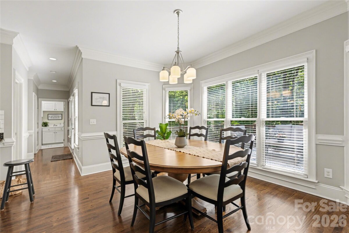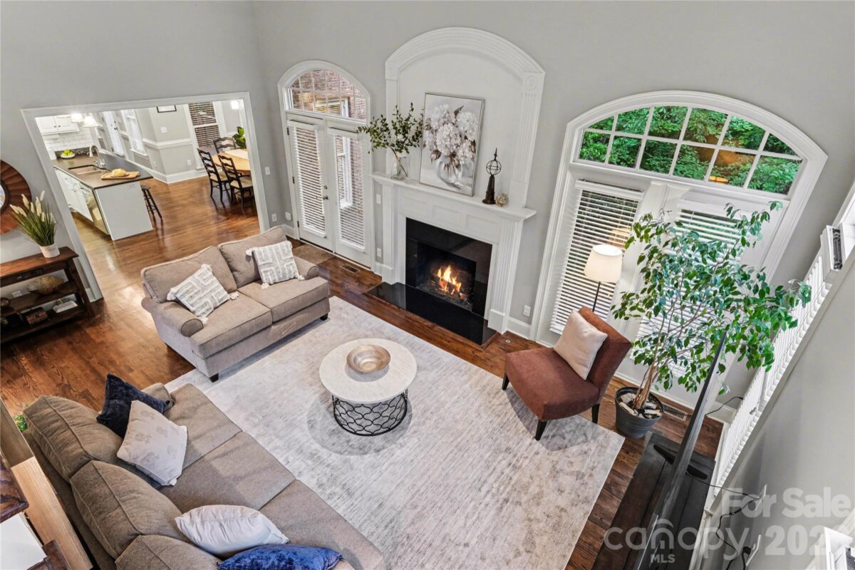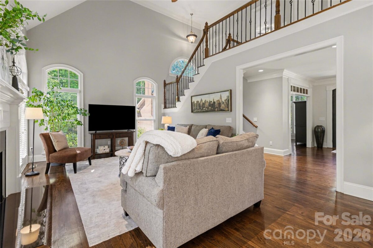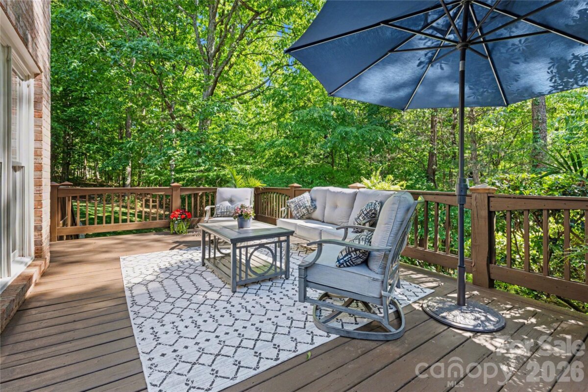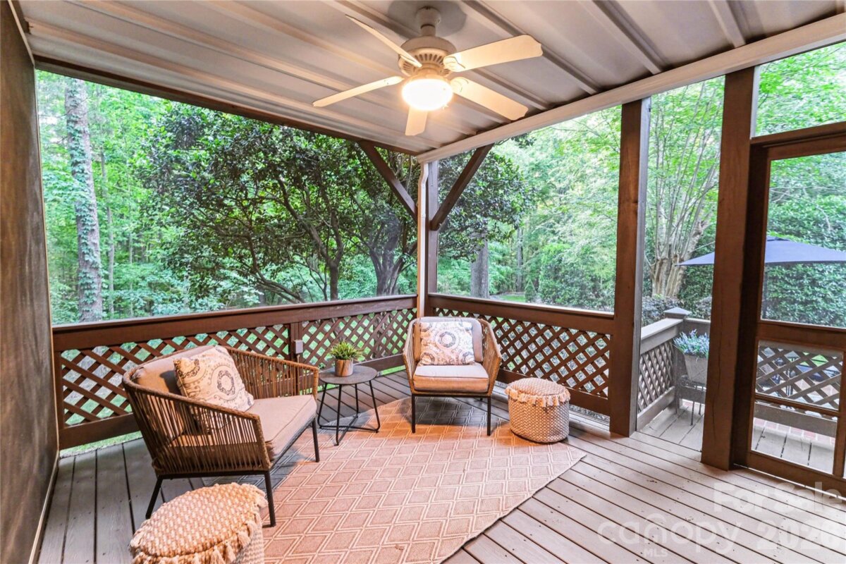 Welcome to Kensington at Ballantyne! You cannot beat this location just off Ballantyne Commons Parkway and right across from the Ballantyne Corporate Park and the new vibrant Ballantyne Bowl. It's all at your fingertips with this gorgeous home. 9341 Whispering Wind Drive is as pretty as it sounds! This home is beautifully situated at the end of a quiet cul-de-sac surrounded by mature trees and tucked in the very back of the neighborhood. Upon arrival you are greeted by the stunning Clark Hall Iron front doors that lead into the foyer with gleaming hardwood floors that flow in every direction. Formal dining and living rooms grace both sides of the entry and then you come to the large vaulted family room with a fireplace, lots of larger windows and abundant natural light! For the person who loves to cook you'll enjoy the updated kitchen, painted cabinets and counter tops and breakfast bar seating. Adjacent breakfast area has oversized windows that look out on the large main floor deck and directly into the woods behind the home. Gives you the feeling of being in a treehouse with that view! A walk-in pantry, powder bath and laundry room round out the main floor. On the second level of the home you will find two bedrooms that share a Jack n Jill bath and the large primary suite which has a lovely sitting area. The suite includes two walk in closets, a large and pretty primary bath w/ an additional flex space perfect for a yoga studio/workout area and additional easily accessible walk-in attic storage. Next on the lower level of the home in the generous basement you will find a large bonus room with a second fireplace, lots of windows, a full bedroom and another full bath. This lower level has easy access to a private patio and screen porch surrounded by lush mature landscaping. The backyard is simply amazing and puts nature right at your door!! Welcome home!