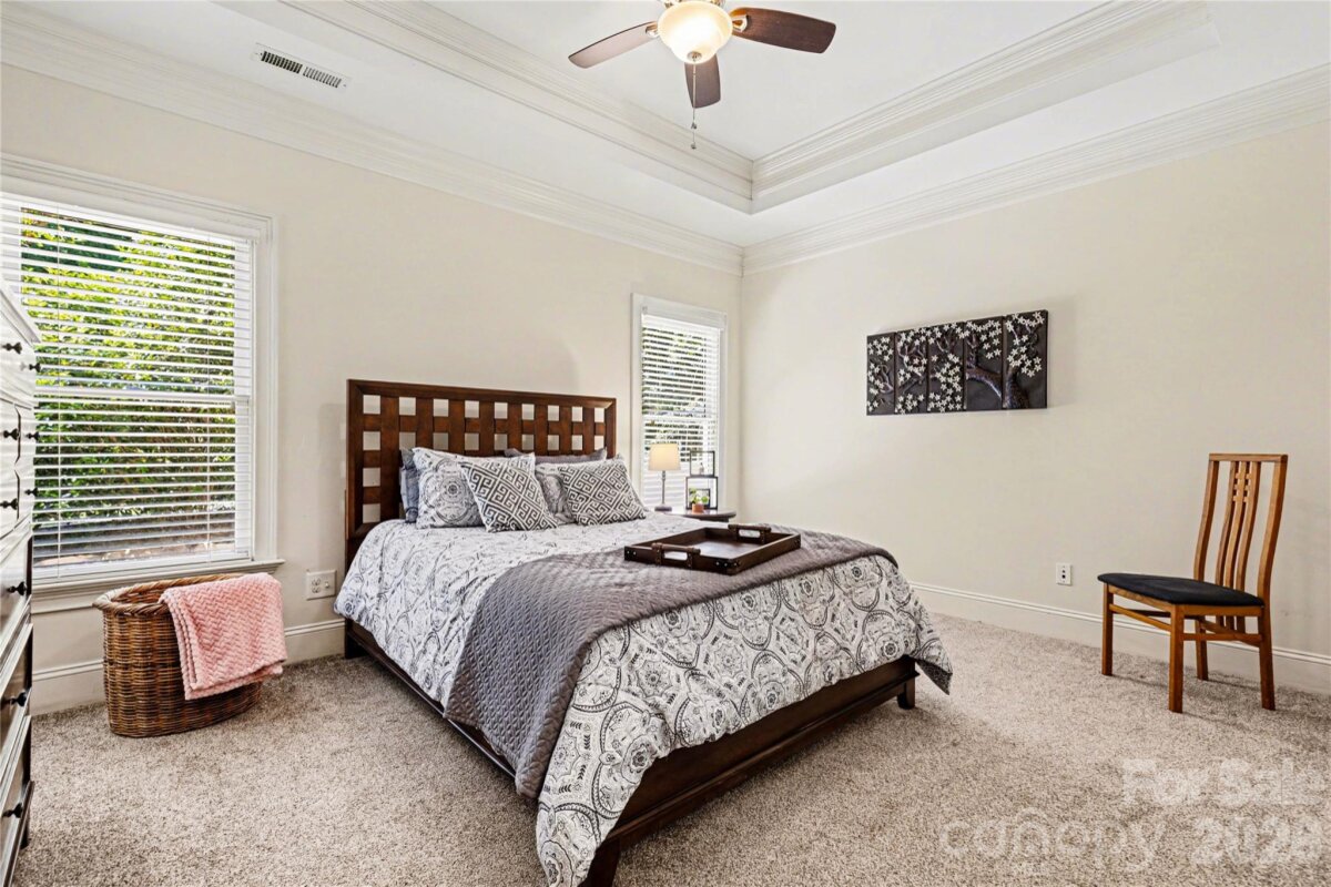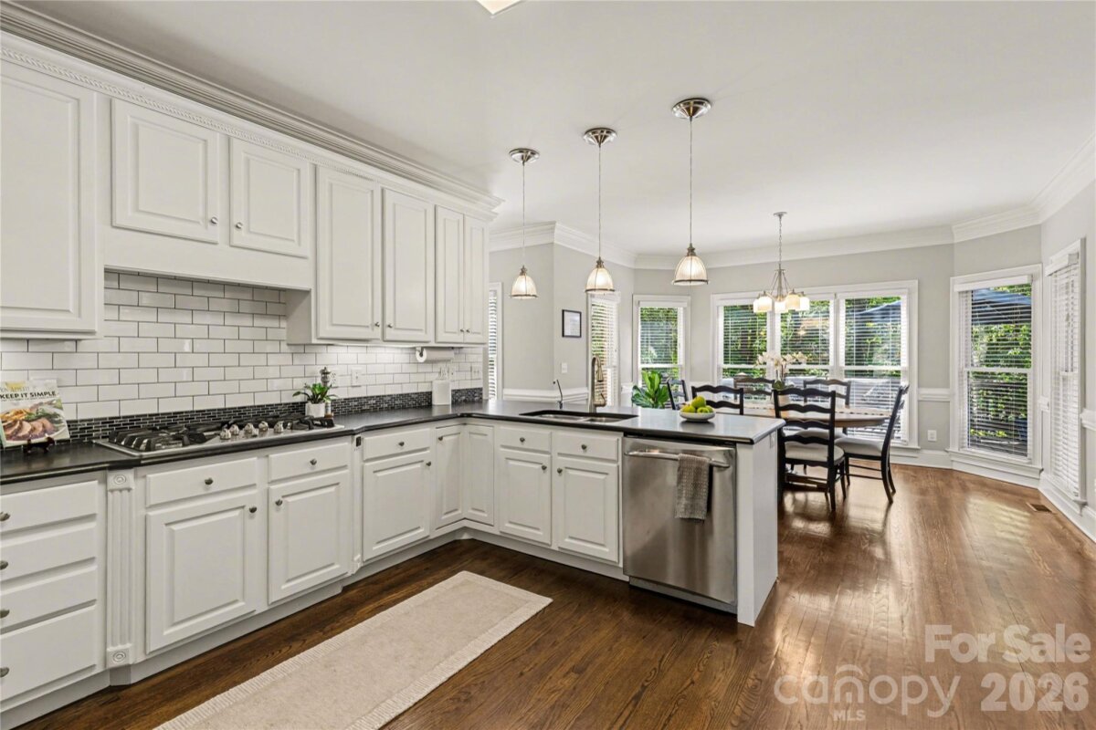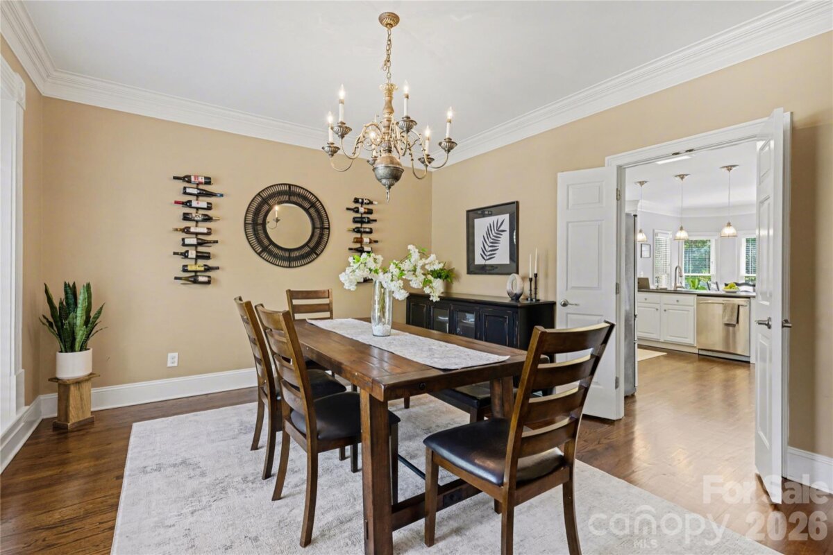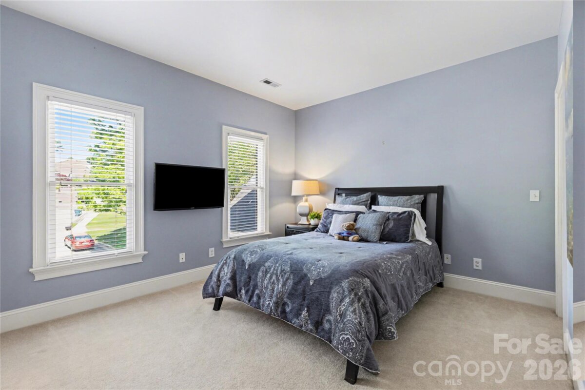 Welcome to Kensington at Ballantyne! You cannot beat this location just off Ballantyne Commons Parkway and right across from the Ballantyne Corporate Park and the new vibrant Ballantyne Bowl. It's all at your fingertips with this gorgeous home. 9341 Whispering Wind Drive is as pretty as it sounds! This home is beautifully situated at the end of a quiet cul-de-sac surrounded by mature trees and tucked in the very back of the neighborhood. Upon arrival you are greeted by the stunning Clark Hall Iron front doors that lead into the foyer with gleaming hardwood floors that flow in every direction. Formal dining and living rooms grace both sides of the entry and then you come to the large vaulted family room with a fireplace, lots of larger windows and abundant natural light! For the person who loves to cook you'll enjoy the updated kitchen, painted cabinets and counter tops and breakfast bar seating. Adjacent breakfast area has oversized windows that look out on the large main floor deck and directly into the woods behind the home. Gives you the feeling of being in a treehouse with that view! A walk-in pantry, powder bath and laundry room round out the main floor. On the second level of the home you will find two bedrooms that share a Jack n Jill bath and the large primary suite which has a lovely sitting area. The suite includes two walk in closets, a large and pretty primary bath w/ an additional flex space perfect for a yoga studio/workout area and additional easily accessible walk-in attic storage. Next on the lower level of the home in the generous basement you will find a large bonus room with a second fireplace, lots of windows, a full bedroom and another full bath. This lower level has easy access to a private patio and screen porch surrounded by lush mature landscaping. The backyard is simply amazing and puts nature right at your door!! Welcome home!