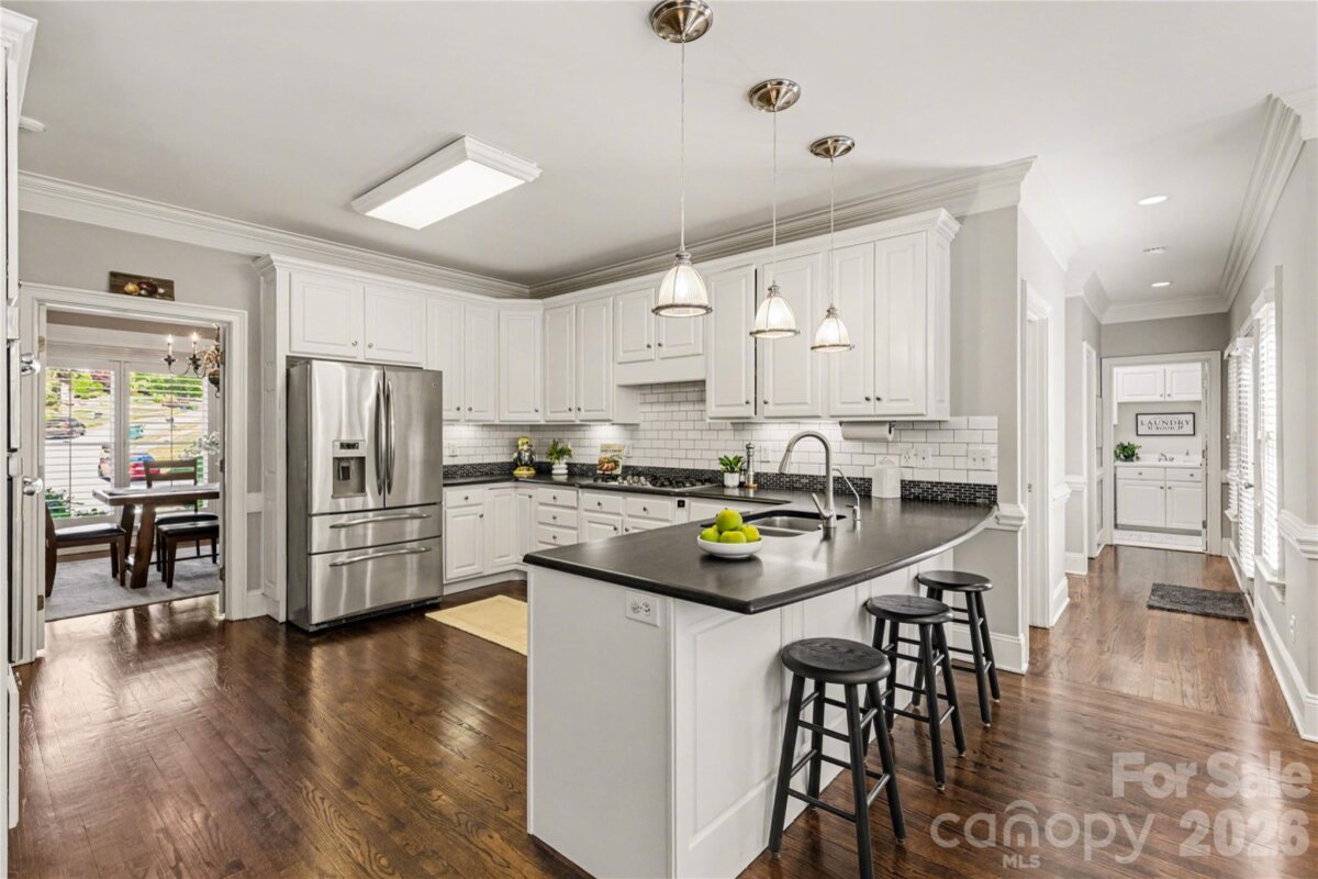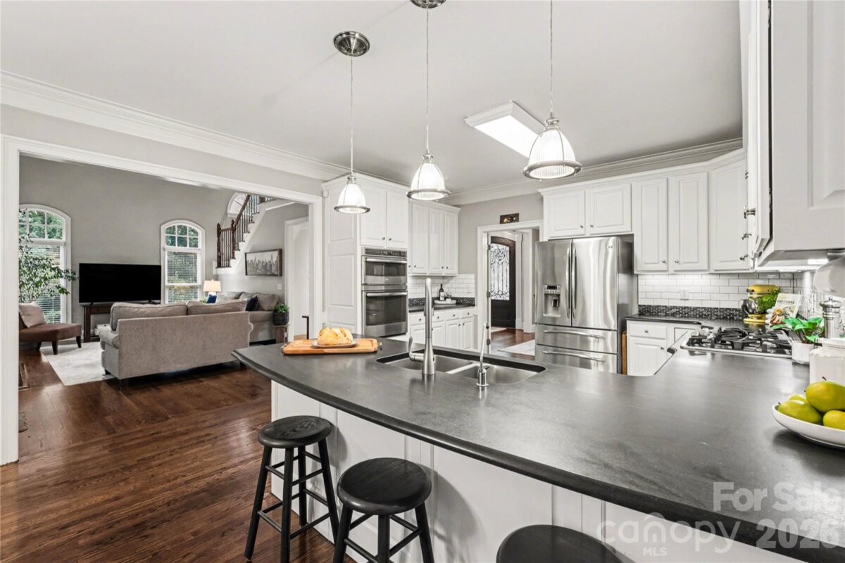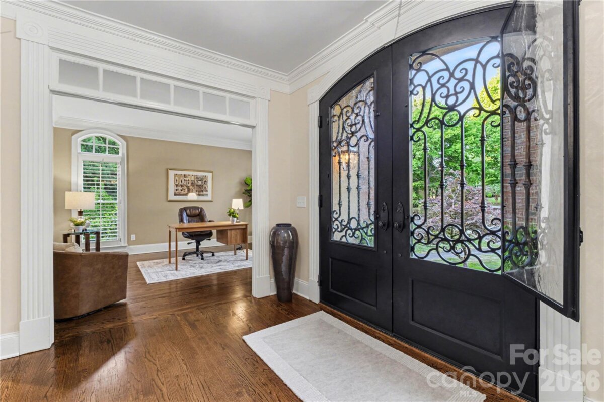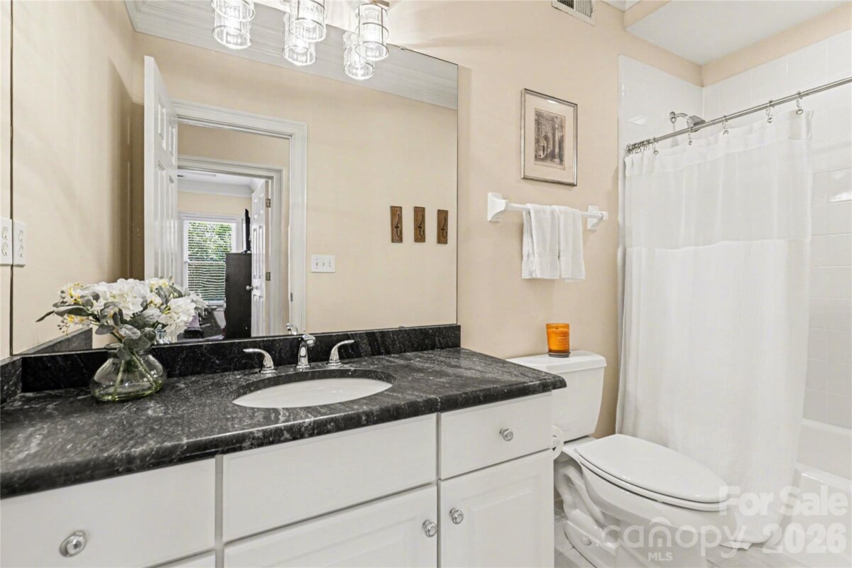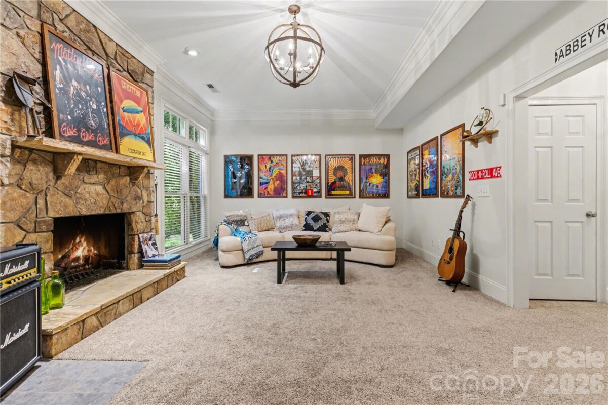 Welcome to Kensington at Ballantyne! You cannot beat this location just off Ballantyne Commons Parkway and right across from the Ballantyne Corporate Park and the new vibrant Ballantyne Bowl. It's all at your fingertips with this gorgeous home. 9341 Whispering Wind Drive is as pretty as it sounds! This home is beautifully situated at the end of a quiet cul-de-sac surrounded by mature trees and tucked in the very back of the neighborhood. Upon arrival you are greeted by the stunning Clark Hall Iron front doors that lead into the foyer with gleaming hardwood floors that flow in every direction. Formal dining and living rooms grace both sides of the entry and then you come to the large vaulted family room with a fireplace, lots of larger windows and abundant natural light! For the person who loves to cook you'll enjoy the updated kitchen, painted cabinets and counter tops and breakfast bar seating. Adjacent breakfast area has oversized windows that look out on the large main floor deck and directly into the woods behind the home. Gives you the feeling of being in a treehouse with that view! A walk-in pantry, powder bath and laundry room round out the main floor. On the second level of the home you will find two bedrooms that share a Jack n Jill bath and the large primary suite which has a lovely sitting area. The suite includes two walk in closets, a large and pretty primary bath w/ an additional flex space perfect for a yoga studio/workout area and additional easily accessible walk-in attic storage. Next on the lower level of the home in the generous basement you will find a large bonus room with a second fireplace, lots of windows, a full bedroom and another full bath. This lower level has easy access to a private patio and screen porch surrounded by lush mature landscaping. The backyard is simply amazing and puts nature right at your door!! Welcome home!
