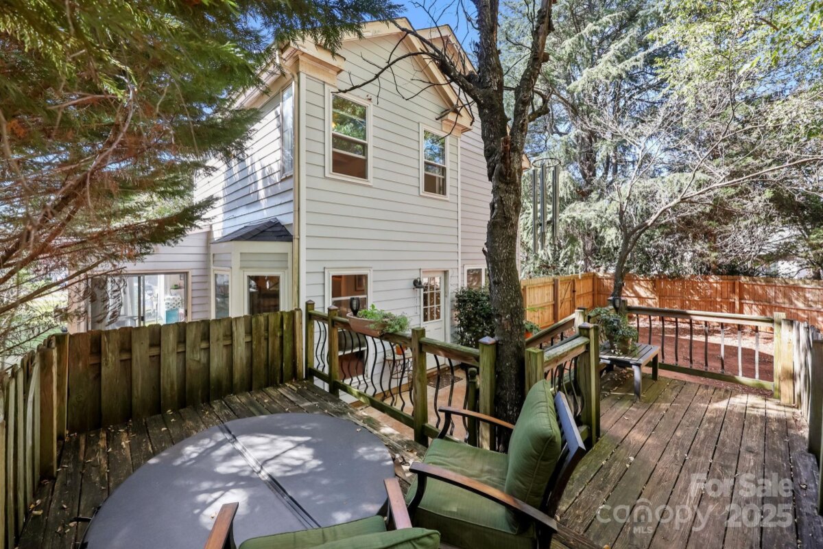 Welcome to this cozy carefully tucked away 3 bedroom, 2.5 bath home in the University area of Charlotte. The home is set back behind a long driveway in a cul-de-sac and located in the Hilltop section of Faires Farm designed to have a more private feel in a busy city. This section of Faires Farms has no HOA. The current owner has made many updates and changes, including fresh paint, several updated fixtures, all new windows replaced in 2023 and a wood privacy fenced backyard. Choose your relaxation zone: soaking in the hot tub in your private backyard, chilling on your patio in the tranquil setting of your own backyard retreat or wander inside and bask in the glow of the woodburning fireplace. Off the side of the garage is a patio that one of the previous owners enclosed, permits cannot be located. Refrigerator, washer and dryer to convey.