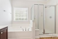 Welcome to this beautifully maintained brick-front two-story home, tucked away on a quiet cul-de-sac in the highly desirable Kensington Forest community. With tasteful updates and a versatile layout, this home offers the perfect balance of style, comfort, and everyday functionality. Step inside to an inviting open-concept main level featuring updated laminate wood flooring (2022), fresh paint, 9-foot ceilings, and elegant crown moulding throughout. Recently added recessed lighting (approximately 6 months old) enhances the bright, modern feel of the space. The kitchen is both stylish and practical, boasting 42" cabinets, granite countertops, and plenty of room for cooking and entertaining. A main-level guest suite provides ideal flexibility for visitors, a home office, or multi-generational living. Upstairs, enjoy brand-new carpeting and a spacious loft area perfect for a media room, playroom, or workspace. Two generously sized secondary bedrooms offer ample space, while the large primary suite is a true retreat—complete with a tray ceiling and a separate sitting area that could easily function as a nursery, office, or additional walk-in closet. Step outside to relax on the patio overlooking a large, level, fenced backyard—perfect for gatherings, pets, or play. The firepit creates a cozy setting for evenings under the stars. Additional peace of mind comes with a roof replaced around 2020. Located just moments from the community pool, this home delivers not only comfort and upgrades, but also a vibrant neighborhood lifestyle. A wonderful opportunity to enjoy cul-de-sac living in one of the area’s most sought-after communities! Hickory Ridge schools - ES, MS & HS - check out the reviews for yourself!