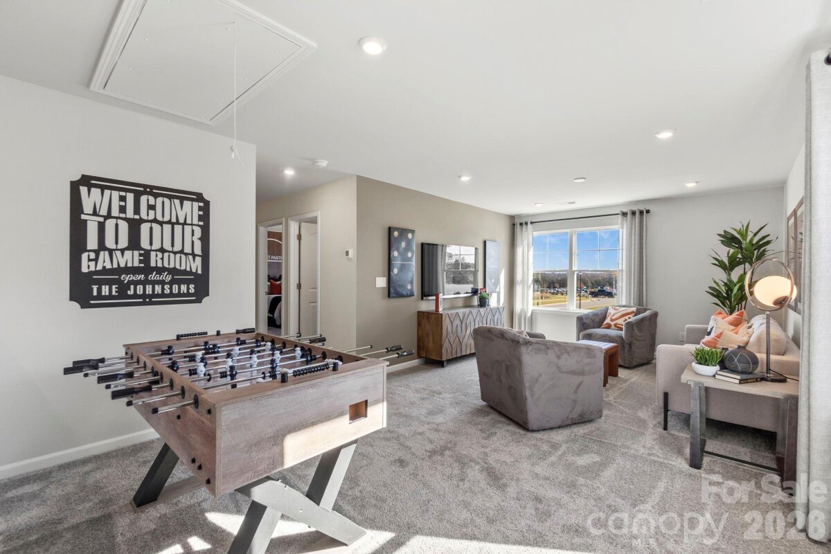 Welcome to your new dream home! The Woodruff at Carpenter Farms boasts an open-concept layout that's perfect for entertaining! An expanded kitchen—featuring a center island and a dining area with patio access—opens seamlessly to a spacious great room with an optional fireplace. There is also a guest room and full bathroom on the main level. Upstairs, you'll find comfortable living space in three secondary bedrooms—two with walk-in closets—and a generous primary suite with a roomy walk-in closet and attached bath. Completing the home, a large game room on the second floor offers versatile hangout space. Plus, this home is located in a fantastic neighborhood with amenities like a community pool, playground, dog park, and activity field for you to enjoy.