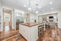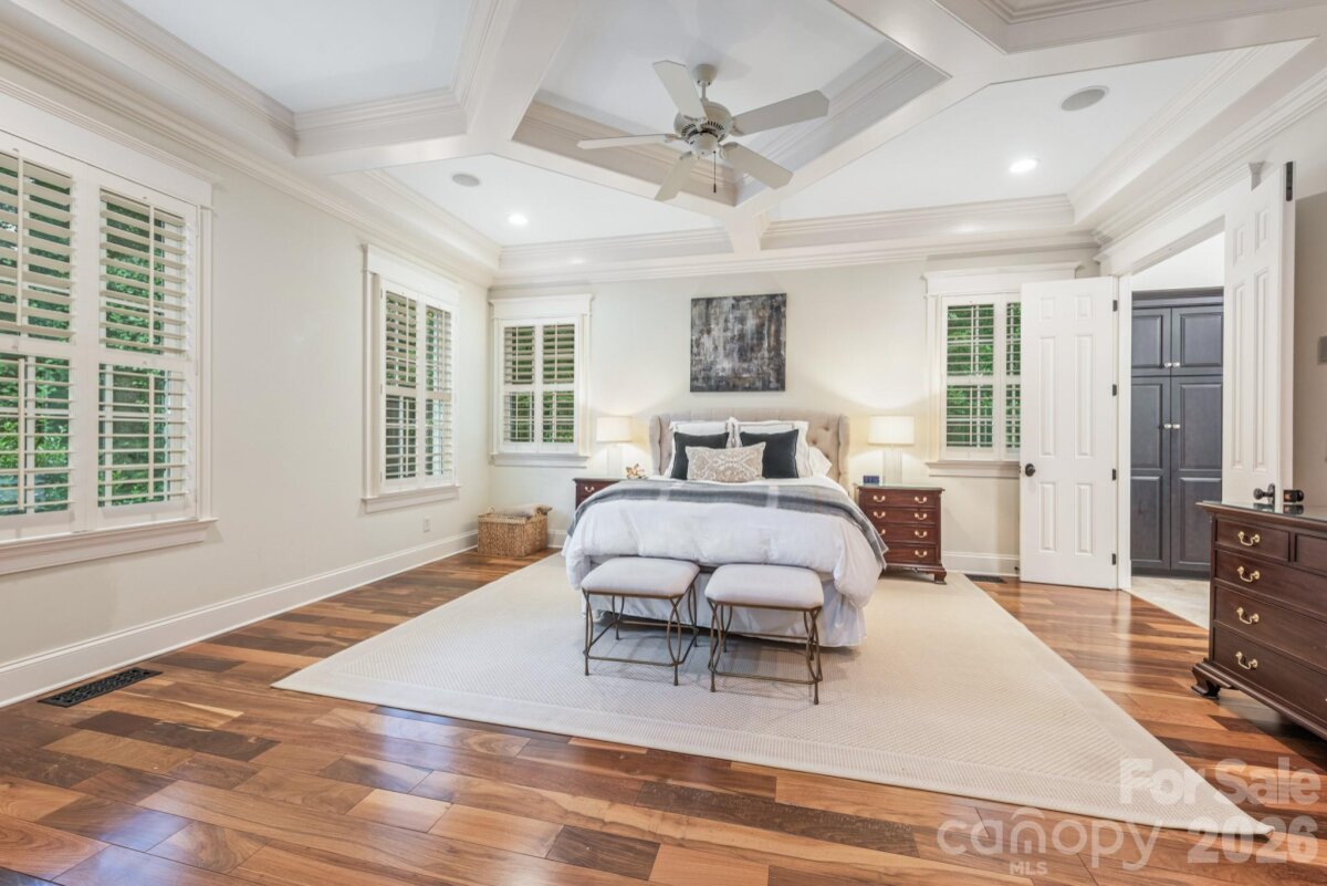 Nestled within one of Charlotte’s premier luxury ZIP codes—with unrivaled proximity to SouthPark Mall, renowned restaurants, lifestyle conveniences, and exceptional private schools—this residence blends classic architectural grace with modern sophistication. This well apppointed home is priced below the appraised value. Appraisal available upon request. A grand Southern foyer welcomes you into an atmosphere of refinement, flowing effortlessly into a dramatic coffered-ceiling great room, an elegant dining salon, and a chef’s kitchen appointed with bespoke cabinetry and high-end appliances. Seamless indoor-outdoor living is enjoyed through a screened porch and an expansive open terrace overlooking the grounds. The main-level primary suite offers a sanctuary of serenity, showcasing a coffered ceiling and a spa-inspired bath. Also on the main floor: an impressive French-doored executive office, a secondary private office, a well-appointed utility wing with drop zone, and exceptional circulation designed for ease of living. The upper level hosts three bedrooms, two full baths, and a flexible bonus room that may serve as a fourth bedroom or lounge. A private third-floor suite offers the ideal retreat for guests, in-laws, or an au pair, creating a truly multi-generational footprint. The walkout lower level elevates entertaining with a custom wine cellar, full bar, billiards area, fireside living room, guest suite, fitness studio, theater room, office, and workshop—each space thoughtfully designed for connection, comfort, and leisure. Discover the essence of timeless Southern luxury in this distinguished 7-bedroom, 5 full and 2 half-bath estate, offering more than 8,000 square feet of curated living across three levels and a private walkout lower level. Additional features include a three-car side-entry garage, walk-up workshop/storage, exceptional storage throughout, and gated community access for enhanced privacy and security. Steeped in craftsmanship, enriched with modern amenities, and positioned in one of Charlotte’s most coveted luxury enclaves—this estate embodies the enduring elegance of Southern living at its finest.