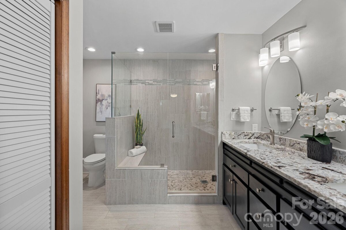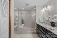 Tucked away on a quiet street in Providence Plantation, 9500 Hampton Oaks Lane offers a rare blend of timeless charm, thoughtful updates, and effortless main-level living. This beautifully maintained full-brick ranch—with a finished basement—sits on a private, tree-lined lot, where mature trees and quiet surroundings create a setting you’ll feel from the moment you pull in—welcomed by a circular drive and thoughtfully maintained landscaping. Inside, the home unfolds with warmth and intention. Designed to live like a true ranch, the main level features the primary suite and most everyday living spaces. A flexible secondary bedroom and bath can be privately enclosed with a pocket door, offering an ideal setup for guests or a potential second en-suite. Every inch of this home reflects careful stewardship and meaningful investment. Major upgrades—including two new HVAC units, updated ductwork, and a 50-gallon electric water heater—offer peace of mind. A whole-house water filtration system, updated septic components with dedicated pump circuit, and a newer roof further enhance the home’s turnkey appeal. With city sewer available, buyers also have the option to connect if desired. The kitchen and living spaces flow seamlessly, enhanced by updated appliances including a double oven and refrigerator. French doors invite natural light, while a large picture window off the breakfast area overlooks the wooded backyard. Updated lighting, faucets, ceiling fans, toilets, and replaced windows— several with transferable warranties—add style and value. A built-in entertainment center anchors the living space, complemented by a robust electric fireplace. The primary suite has been thoughtfully updated, featuring a beautiful bathroom with refreshed flooring and finishes, while additional bathrooms include granite countertops. Downstairs, the finished basement offers incredible flexibility—ideal for entertaining, guests, a home gym, or media room—complete with a wood-burning stove that adds warmth and character. Step outside and the lifestyle continues. The Trex deck (with transferable warranty) and enclosed Eze-Breeze three-season room create the perfect backdrop for relaxing or entertaining. A custom firepit, walkway, and added concrete pad extend the outdoor space, all enclosed by an aluminum fence. Practical details shine—from the redesigned driveway and circular parking area to the EV/RV 50-amp plug in the garage—making this home as functional as it is beautiful. Homes like this—meticulously maintained and thoughtfully updated in one of South Charlotte’s most beloved neighborhoods—don’t come along often. 9500 Hampton Oaks Lane isn’t just a home—it’s the kind of place you don’t just move into—you settle into.