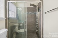 Set in a cul de sac location of the scenic Wellington neighborhood, this single- level dwelling has been freshly painted on interior, new carpet,2024 gutter guards and Roof and Dishwasher, water main line, 2022 New water heater, New gas logs for fireplace 2019, 2018 AC. Kitchen offers granite counters, stainless appliances, tile backsplash and eat in kitchen area. Primary bath was updated with beauiful walk in shower, glass sink bowl at vanity and dual flush toilet. Home greets you with wood look lvp flooring, vaulted ceilings in the family room and an inviting brick fireplace for cozy nights by the TV. French doors will lead you to a large exterior deck which sellers enlarged and a huge back yard that offers a firepit area, fenced yard and privacy of no builds behind you.Clark Greenway path is available right out your back gate for taking a stroll or getting in your runs! Inside off the foyer you have a dining area that is open to the family room which makes for great entertaining. Covered front porch greets you on this charming Ranch home.Very well maintained home! You will see immediately the pride taken in this home.Clarks Creek Greenway joins with the southeastern portion of Mallard Creek Greenway to form 5.7 miles of designated Thred Trail. The route passes many neighborhoods and an access near US 29 businesses, before intersect wtih the Toby Creek Greenway and ending at Kirk Farm Fields.