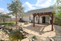 Welcome to this beautifully maintained 3-bedroom, 2-bath ranch in the highly sought-after Southampton community, just minutes from Ballantyne’s premier shopping, dining, and everyday conveniences. Built in 2001, this thoughtfully designed single-level home offers an inviting open floor plan, perfect for both relaxing and entertaining. The spacious living room features a cozy gas-log fireplace and flows seamlessly into the bright, inviting kitchen complete with beautiful quartz center island, stainless steel single-basin sink, Energy Star SS appliances, and a sunny breakfast area. The primary suite serves as a private retreat with an oversized walk-in shower, while two additional bedrooms and a full bath provide comfort and flexibility. Step outside to your own BACKYARD OASIS—fully fenced and beautifully landscaped—with an oversized patio, fire pit, peaceful garden pond, raised planter beds, and rain barrels. Mature fruit trees, including apple, fig, cherry, and peach...adds charm and seasonal bounty w/ the private, peaceful and tranquil rear outdoor setting. Pre-inspected and truly move-in ready, this home also features SunPower solar panels installed in 2023, offering enhanced energy efficiency and long-term savings. With its combination of modern updates, eco-friendly features, and unbeatable Ballantyne location featuring excellent schools and living conveniences, this home is a rare opportunity in one of South Charlotte’s most desirable neighborhoods.