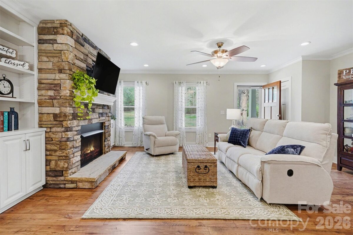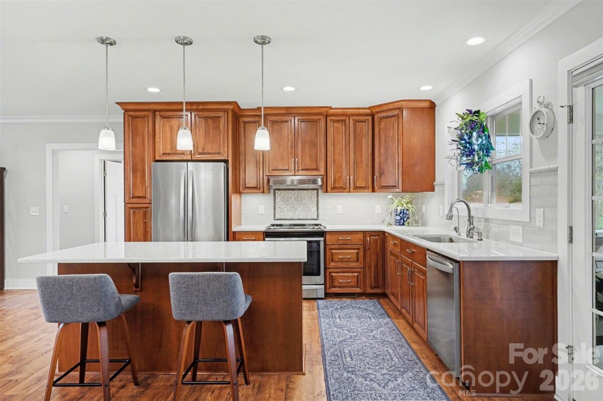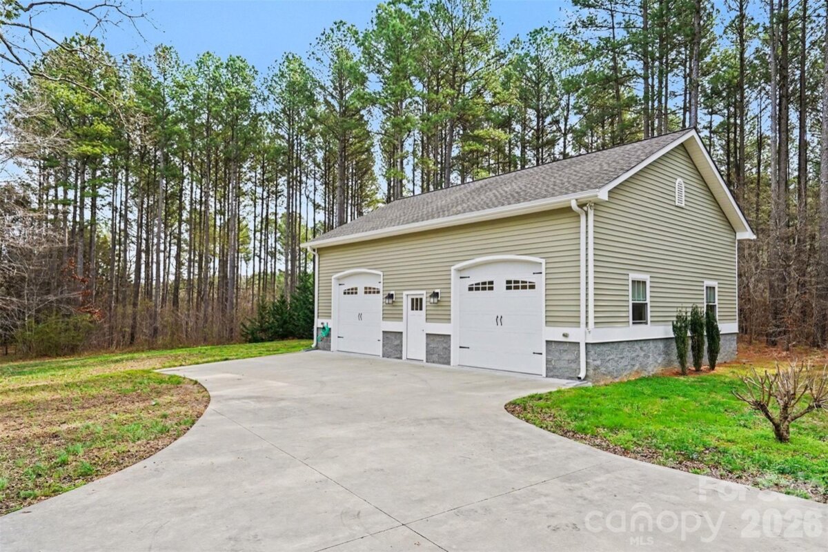 Tucked away on 6 acres of privacy in desirable Mount Pleasant, this beautifully custom-built 2018 home offers peaceful country living. Step inside to find a bright, open layout with quality finishes including custom cabinetry with large deep drawers, quartz countertops and island. The gorgeous stone fireplace with gas logs allows for cozy evenings by the fire. Morning coffee can be coupled with a sunrise view from the rear screened porch. The home features two bedrooms and an office, and two full bathrooms in a split floor plan. The primary suite is filled with natural light, beautiful walk-in closet with pocket door accessed within the primary bathroom. Zero-grade entry oversized tile shower with dual shower heads provides an incredible winding down at the end of the day. The dual-sink vanity has abundant storage for everything. In fact, there is ample storage tucked away in every possible place in the home. The laundry is filled with cabinets, hanging space and a sink for all the necessities. Maintenance of this home will satisfy the highest standards all the way to the encapsulated crawl space and attached two car garage. Let every mechanic know that THIS detached garage is amazing. It is 1,207 sq ft of heated space divided into two separate bays. The ceilings are 13 ft and each bay has a 9.5 ft automatic garage door. Complete with ceiling fans, attic fan, attic access, and a 10k lb automotive lift plus a sink and walk-out door makes this asset a dream. This quiet retreat delivers it all only two minutes from Mount Pleasant town limits, fine & casual dining, pharmacy, doctor's offices, grocery, library, churches, and active living center plus the popular Carolina Thread Trail. Schedule your showing today.