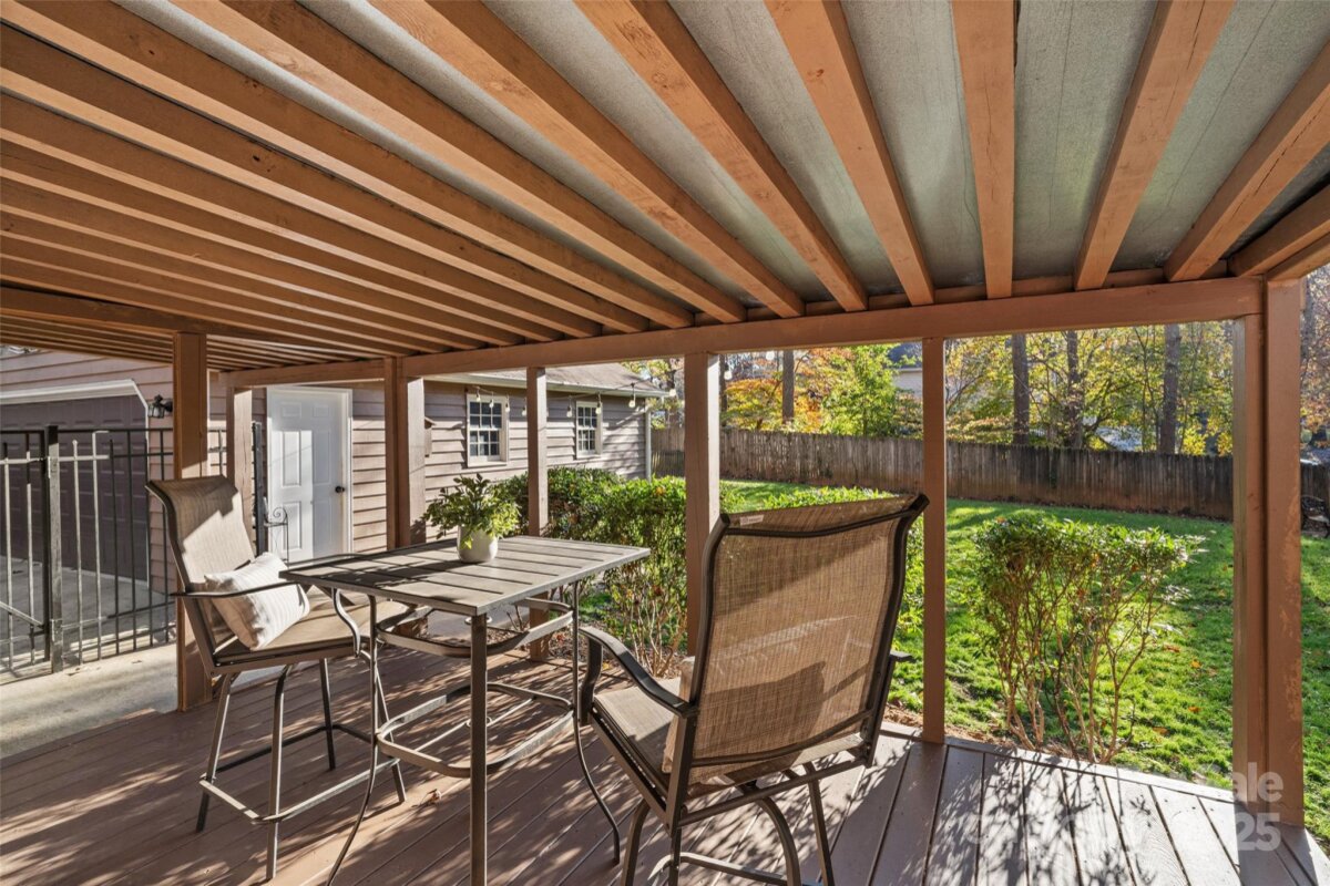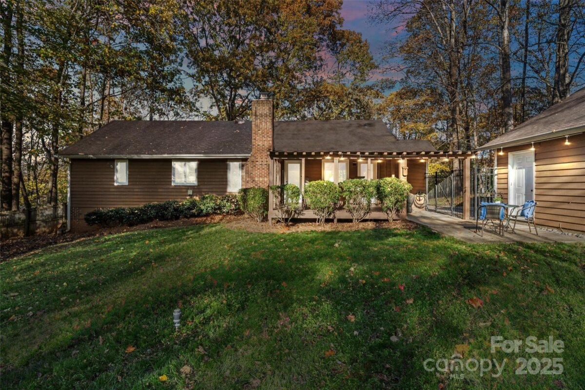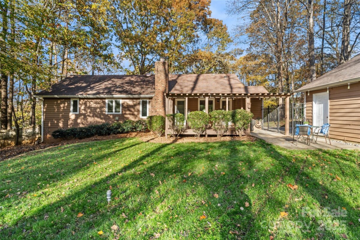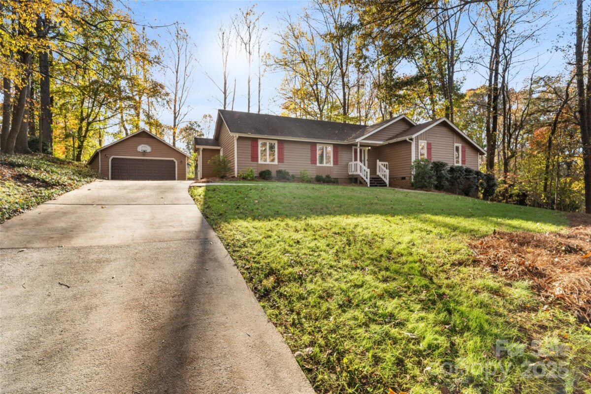 Tucked away in the quiet, tree-lined Bainbridge neighborhood, this well maintained home offers a thoughtful blend of comfort, functionality, and style. The bright, open floor plan welcomes you with vaulted ceilings and classic column accents, creating a spacious main living area ideal for everyday living and easy entertaining. Just off the living room, the dining area features built-in cabinetry, perfect for storing serve ware or displaying decor - adding both charm and practical storage. The kitchen includes warm wood cabinetry, stainless steel appliances, and a clear view of the fully fenced backyard. A side entrance off the kitchen doubles as a mudroom and pantry, providing extra storage and a great drop zone space for daily use. The primary suite includes a walk-in closet and an ensuite bath with dual vanities and a tiled shower. Two additional bedrooms and a full hall bath complete the convenient wing style layout. Outside, a covered porch overlooks the fully, fenced yard, with additional patio space and a firepit area, ideal for gatherings or quiet evenings at home. The detached, oversized two car garage provides excellent versatility, with room for a home gym or workshop, along with a separate storage room at the rear for yard equipment or seasonal items. Set on just over half an acre, this property offers space, privacy, and a move in ready home in a desirable neighborhood!