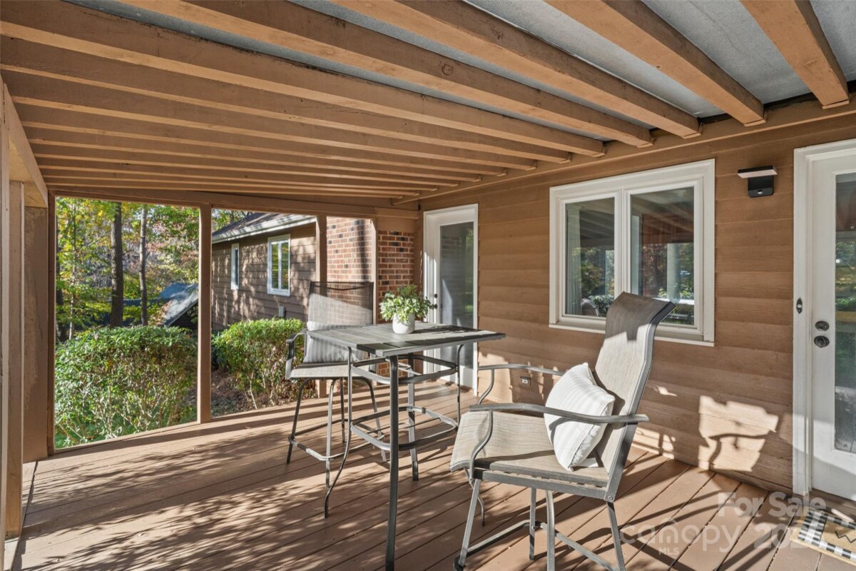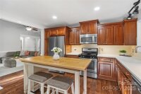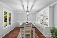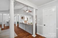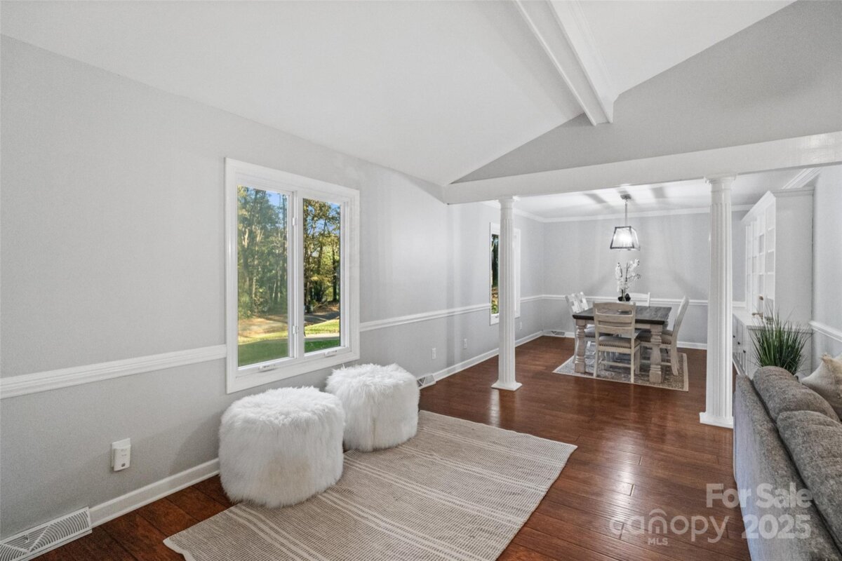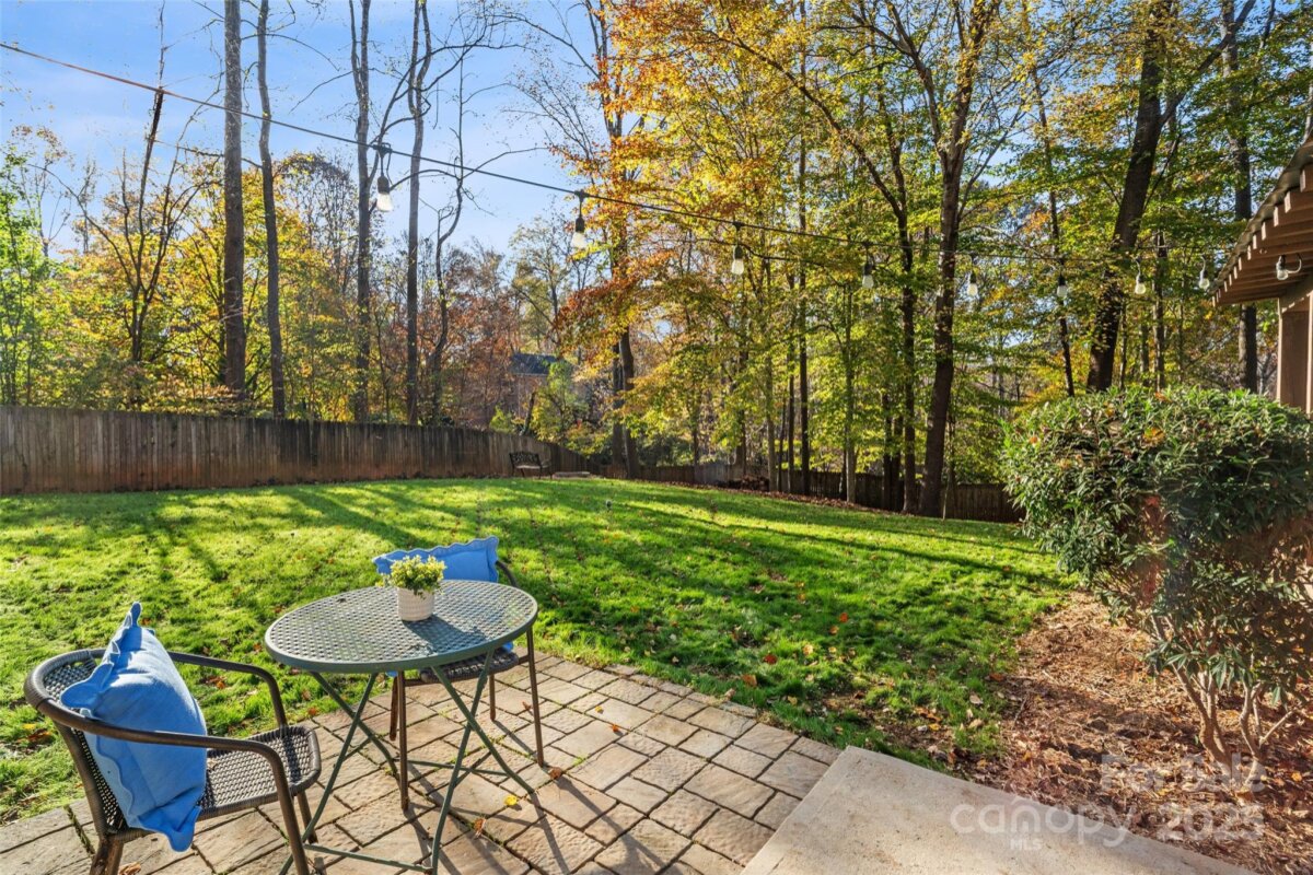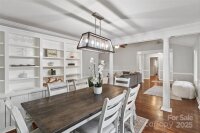 Tucked away in the quiet, tree-lined Bainbridge neighborhood, this well maintained home offers a thoughtful blend of comfort, functionality, and style. The bright, open floor plan welcomes you with vaulted ceilings and classic column accents, creating a spacious main living area ideal for everyday living and easy entertaining. Just off the living room, the dining area features built-in cabinetry, perfect for storing serve ware or displaying decor - adding both charm and practical storage. The kitchen includes warm wood cabinetry, stainless steel appliances, and a clear view of the fully fenced backyard. A side entrance off the kitchen doubles as a mudroom and pantry, providing extra storage and a great drop zone space for daily use. The primary suite includes a walk-in closet and an ensuite bath with dual vanities and a tiled shower. Two additional bedrooms and a full hall bath complete the convenient wing style layout. Outside, a covered porch overlooks the fully, fenced yard, with additional patio space and a firepit area, ideal for gatherings or quiet evenings at home. The detached, oversized two car garage provides excellent versatility, with room for a home gym or workshop, along with a separate storage room at the rear for yard equipment or seasonal items. Set on just over half an acre, this property offers space, privacy, and a move in ready home in a desirable neighborhood!