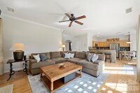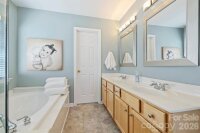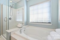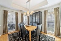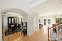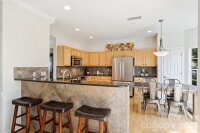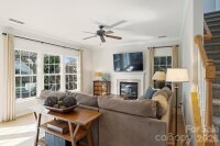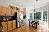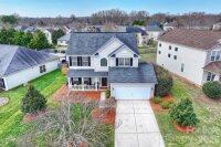 Welcome to this beautiful two-story home with a charming rocking-chair front porch, perfectly situated in the heart of Ballantyne! Start your mornings with coffee on the porch or unwind in the evenings with a glass of wine while enjoying the peaceful neighborhood setting. Inside, you’ll find a thoughtfully designed, light-filled floor plan accented by hardwood floors, crown molding, and fresh neutral paint throughout. The spacious living room features a gas fireplace and floor-to-ceiling windows, creating a warm and inviting space for everyday living or entertaining. The kitchen overlooks the private, scenic backyard and features granite counters, newer appliances, a pantry closet, and sunny breakfast area. A formal dining room with tray ceiling, arched entrances and chair rail detail provides flexible space ideal for dining, a home office, or an additional living area. Upstairs, four generously sized bedrooms include a serene primary suite with vaulted ceiling and spa-like en-suite bath featuring a frameless glass shower and garden tub. A centrally located hall bath and convenient laundry closet make daily living effortless. Updated lighting and custom bathroom mirrors add a modern touch throughout. Step outside to your fully fenced backyard retreat, complete with a pergola and stone patio, perfect for relaxing, grilling, or gathering with friends. An extended driveway offers valuable extra parking. Enjoy the community recreation area and playground and an unbeatable location just minutes from Blakeney Shopping Center with premier shopping and dining. Zoned for highly rated schools and nestled in one of the most desirable areas of Charlotte. Don’t miss this opportunity to call Ballantyne home!
