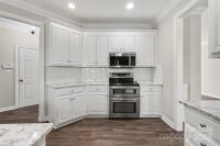 Updated 5-bedroom, 2.5-bath home located in the Highland Creek community on the Cabarrus County side. A large open foyer and powder room welcome you into the home, while the formal living and dining rooms provide flexible space for everyday living and family gatherings. The kitchen is fully equipped with stainless steel appliances and a pantry, and features new granite countertops, an undermount stainless steel sink, and tile backsplash (2025), along with a new garbage disposal (2025). Luxury vinyl plank flooring flows throughout the entire first floor, complemented by a wood staircase. The home offers newer HVAC systems on both levels — first floor HVAC replaced in 2020 and second floor HVAC replaced in 2023 — providing added comfort and efficiency. An architectural roof was installed in 2025. All bedrooms are located on the second floor, including a spacious primary suite with a garden tub, separate shower, and tile flooring. One of the secondary bedrooms is oversized and offers flexibility for use as a playroom, media room, or home office. Outside, enjoy a private, fenced backyard with a wood deck and stone patio, ideal for entertaining or relaxing outdoors. Highland Creek features sidewalk-lined streets and community amenities including swimming pools, a fitness center, tennis and pickleball courts, walking trails, and a public golf course. Conveniently located near shopping, dining, grocery stores, and everyday essentials, with easy access to I-485, I-85, and I-77, making commuting throughout the Charlotte area simple and efficient. Well maintained and thoughtfully updated, this home delivers an upscale feel, a functional layout, and recent improvements that make it a must-see for buyers seeking quality, comfort, and convenience.